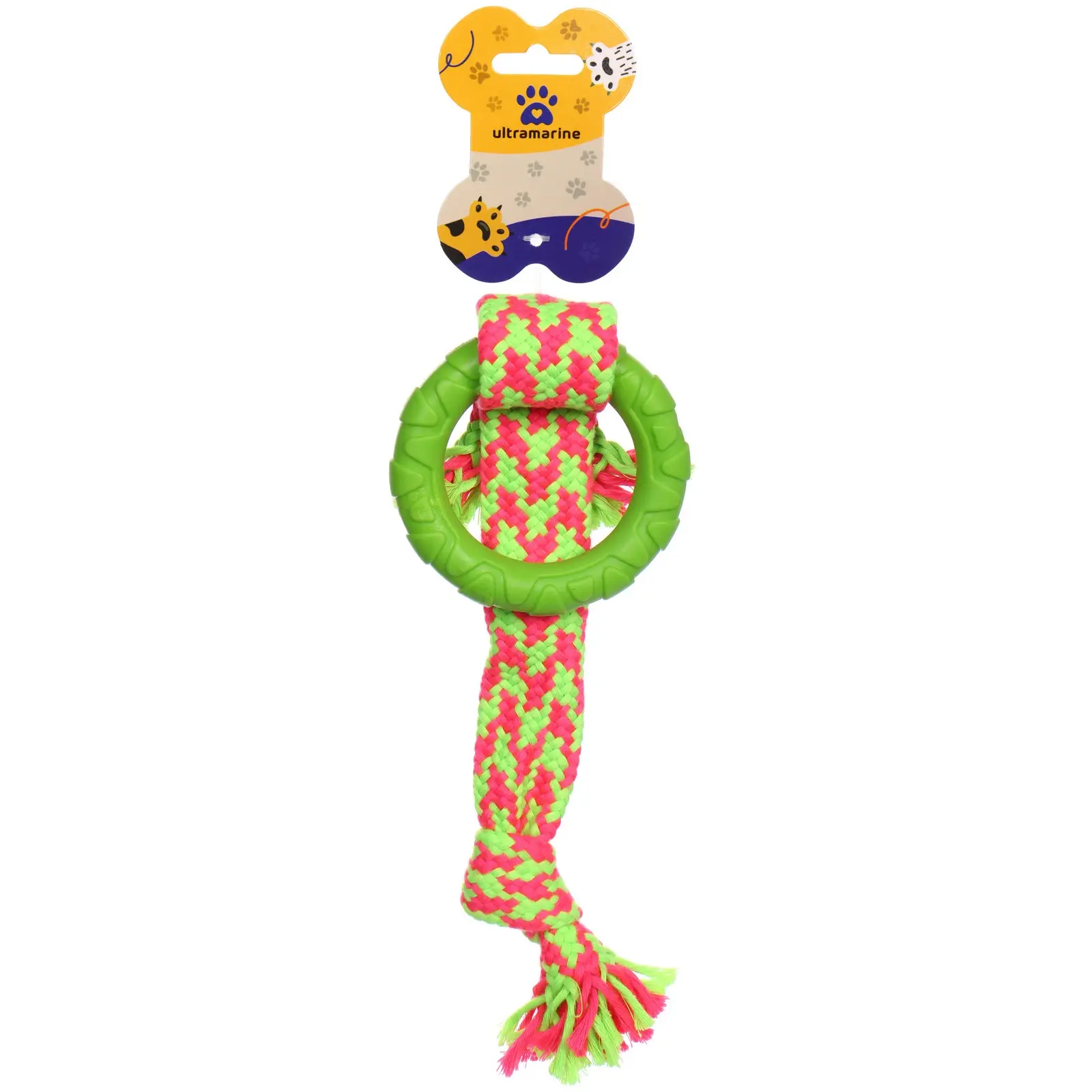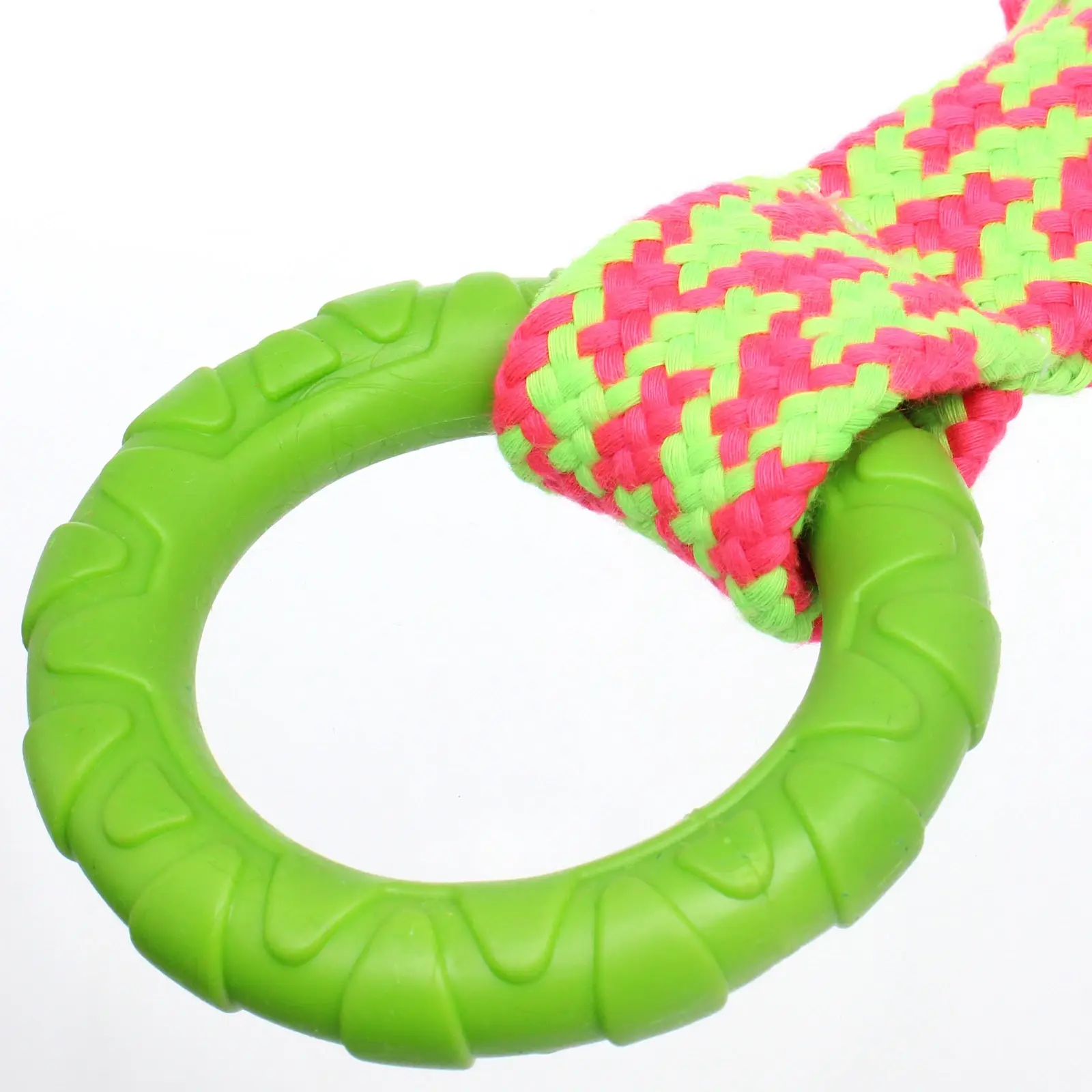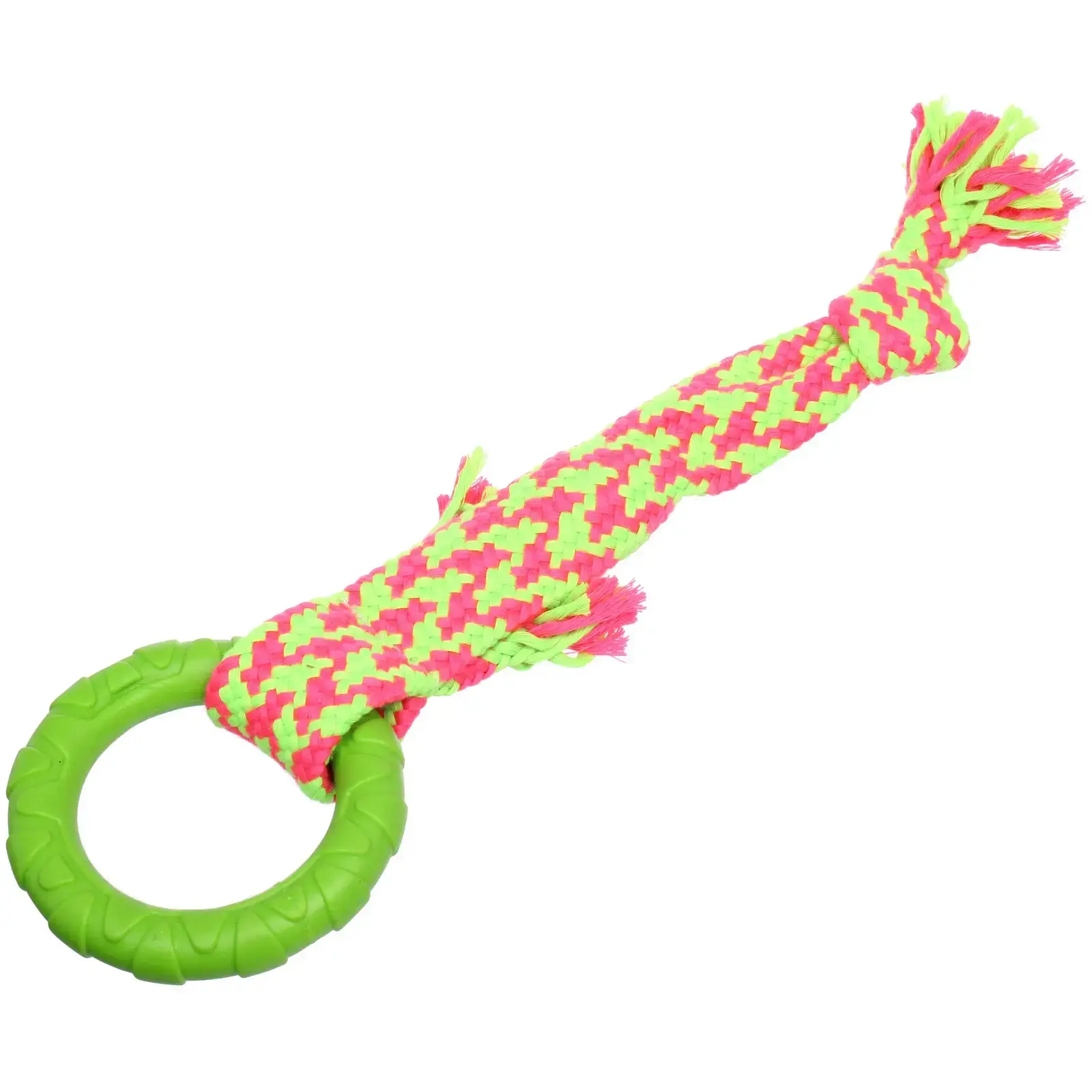 Игрушка-канат для собак с кольцом "Счастливый хвост!", ярко-зеленый, 34*9см