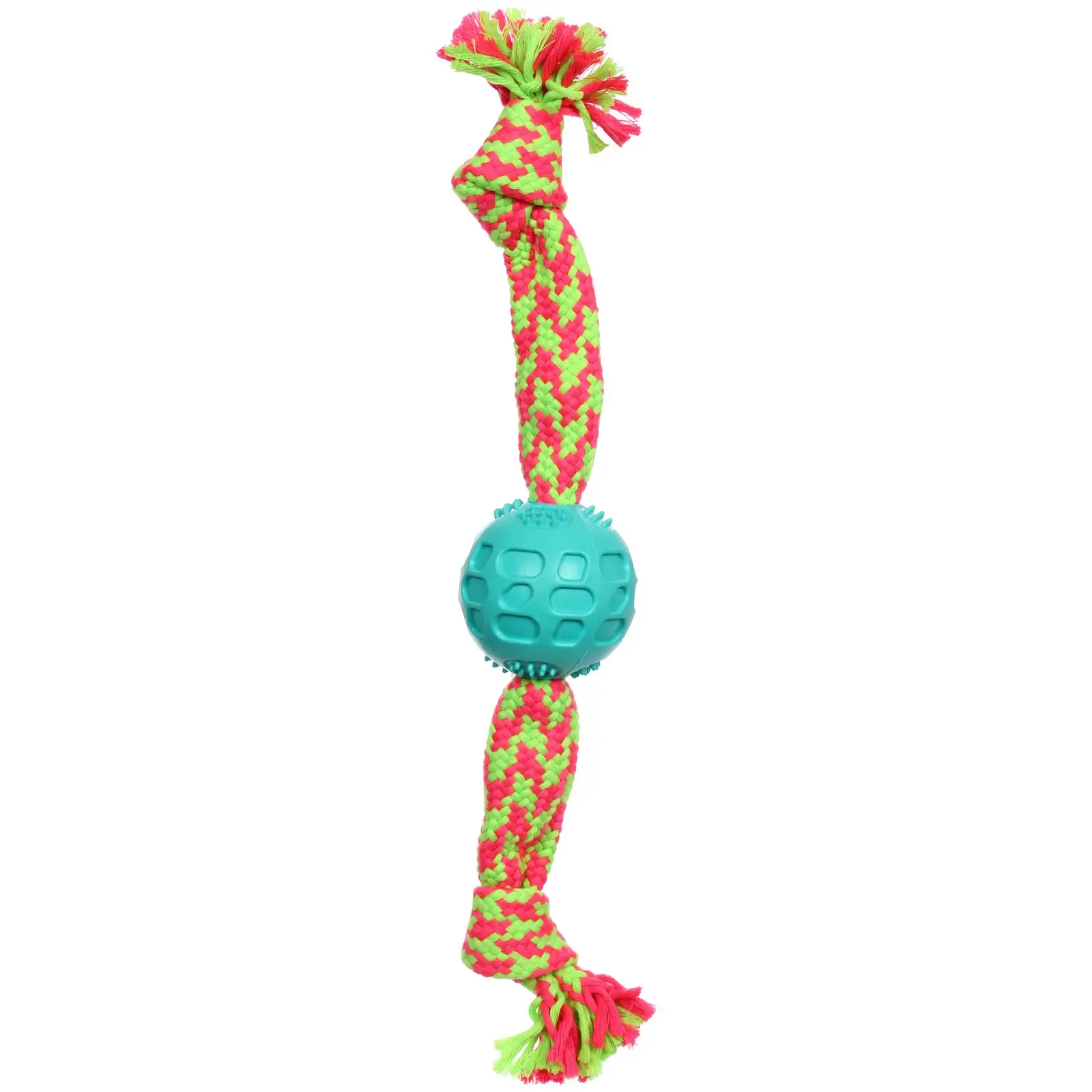 Игрушка-канат для собак с мячиком "Счастливый хвост!", ярко-зеленый, 40*6см/95гр