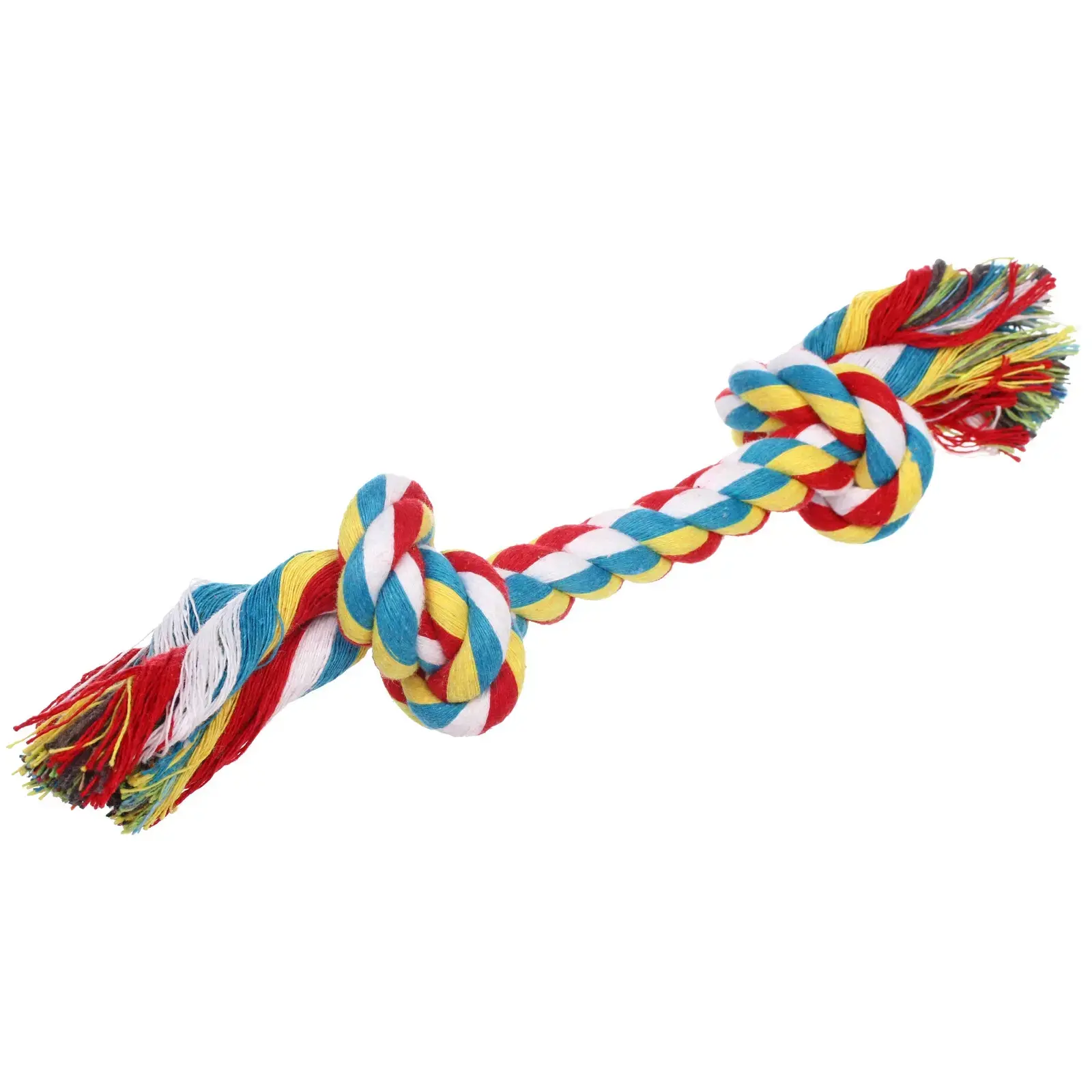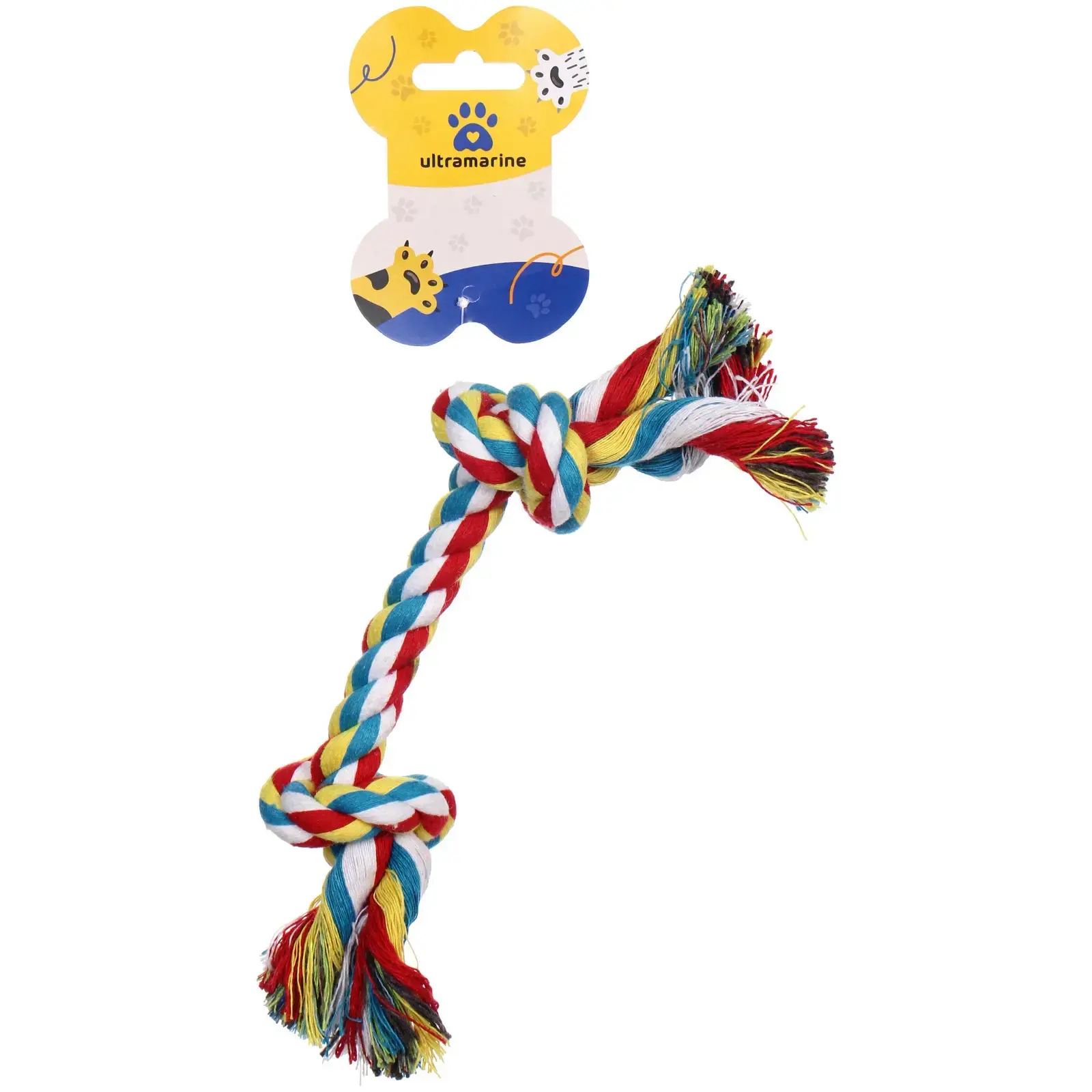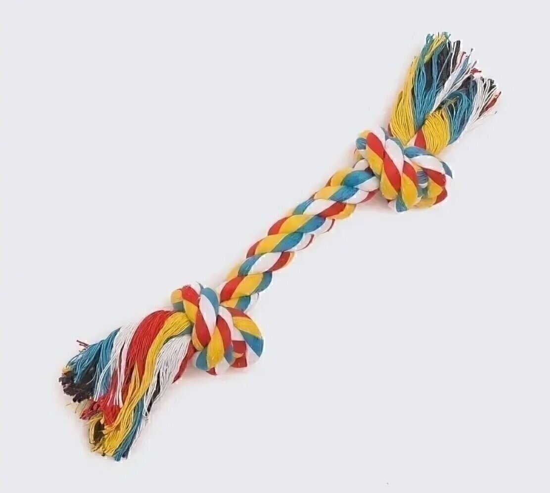 Канат сплетен из натуральных хлопковых нитей, что гарантирует безопасность для здоровья вашего питомца. Материал прочный, устойчивый к повреждениям, но при этом мягкий и приятный на ощупь. Два больших узла на концах добавляют удобства для захвата и игры.