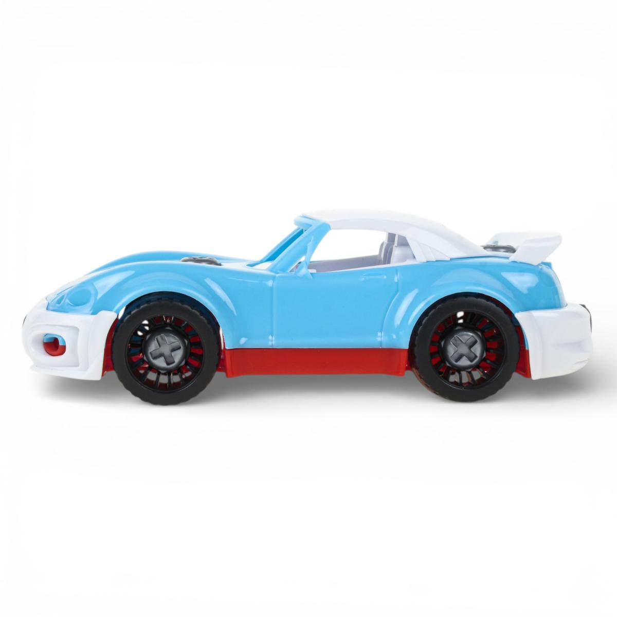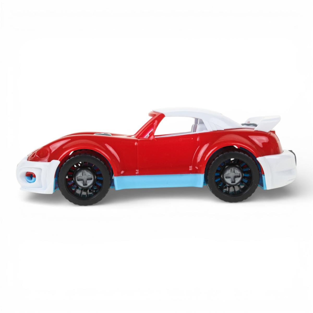 - Готовность к гонкам: после завершения сборки спорткар превращается в полноценную игровую машинку, которая отлично ездит по ровным поверхностям благодаря большим колесам.