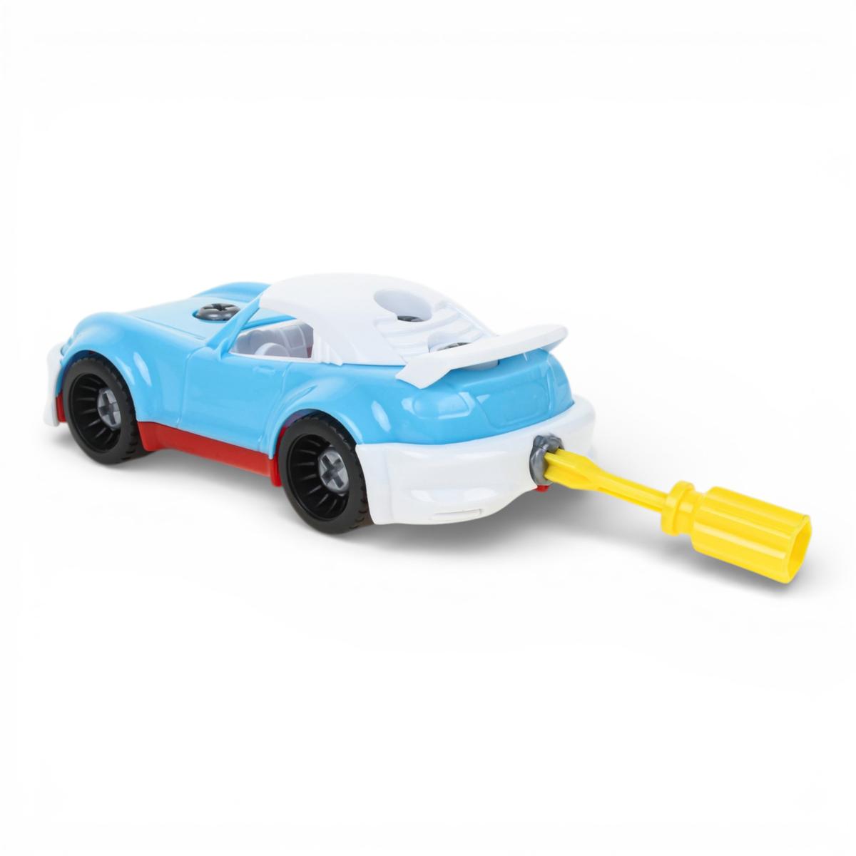Основная особенность набора — возможность полной сборки и разборки автомобиля. В комплект входит удобная пластиковая отвертка с крестообразным наконечником, созданная специально для маленьких ладошек. Закручивая крупные винты, ребенок тренирует мелкую моторику, координацию движений, усидчивость и пространственное мышление.
