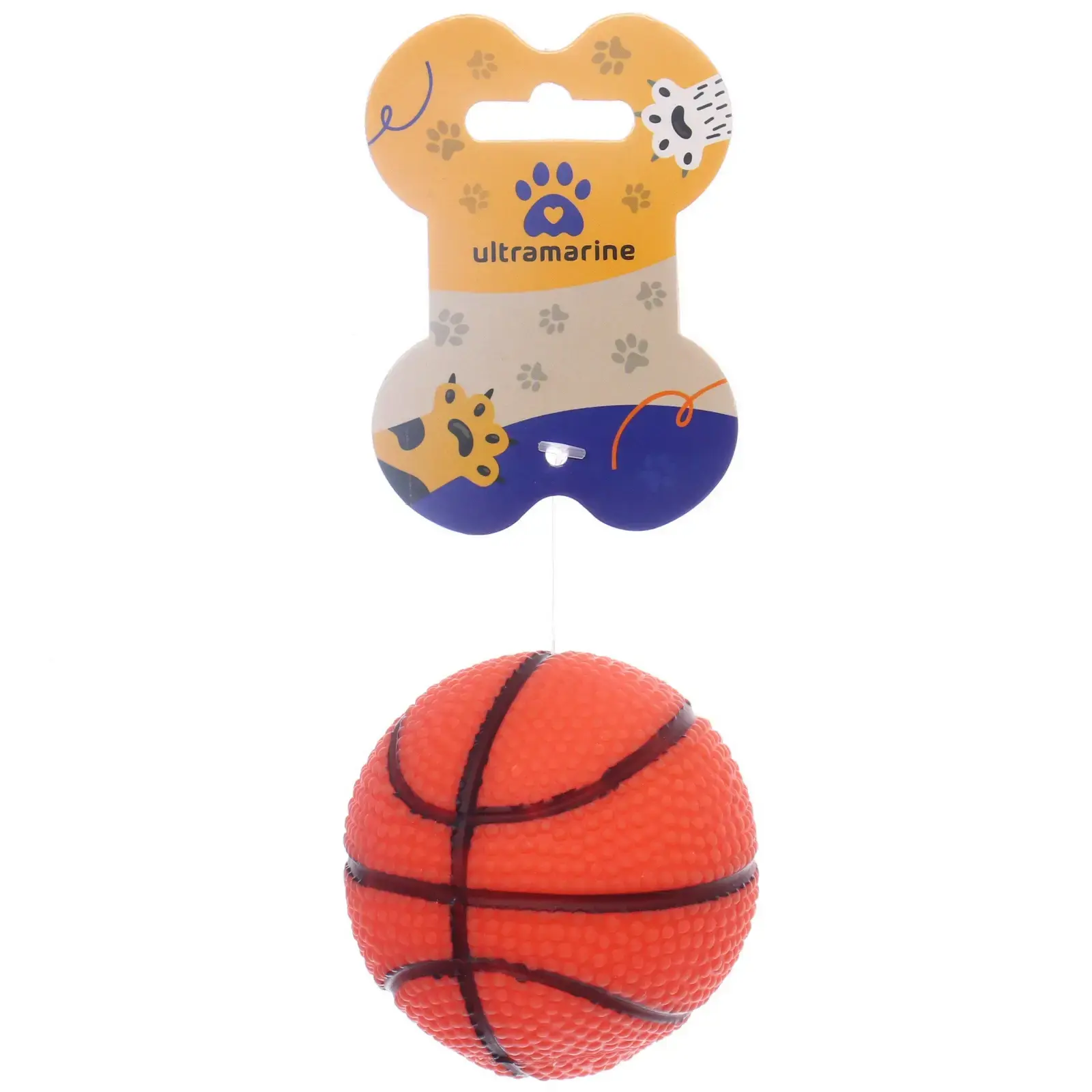 Мяч для собак «Беги Лови» с пищалкой, оранжевый, 7 см, резина, баскетбольный дизайн