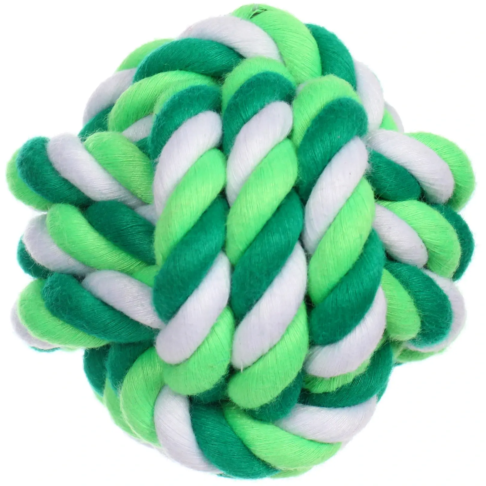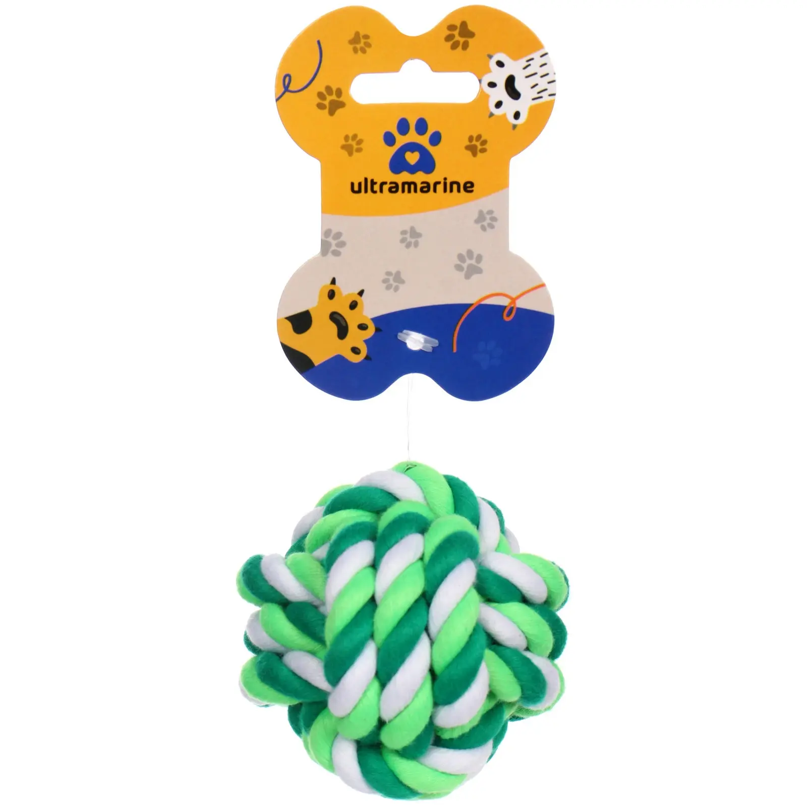 Представляем плетеный мяч 'КАНАТНЫЙ ИГРУЛИК' – незаменимый аксессуар для активных игр с вашей собакой. Благодаря прочному текстильному плетению, игрушка выдерживает даже самые энергичные игры.