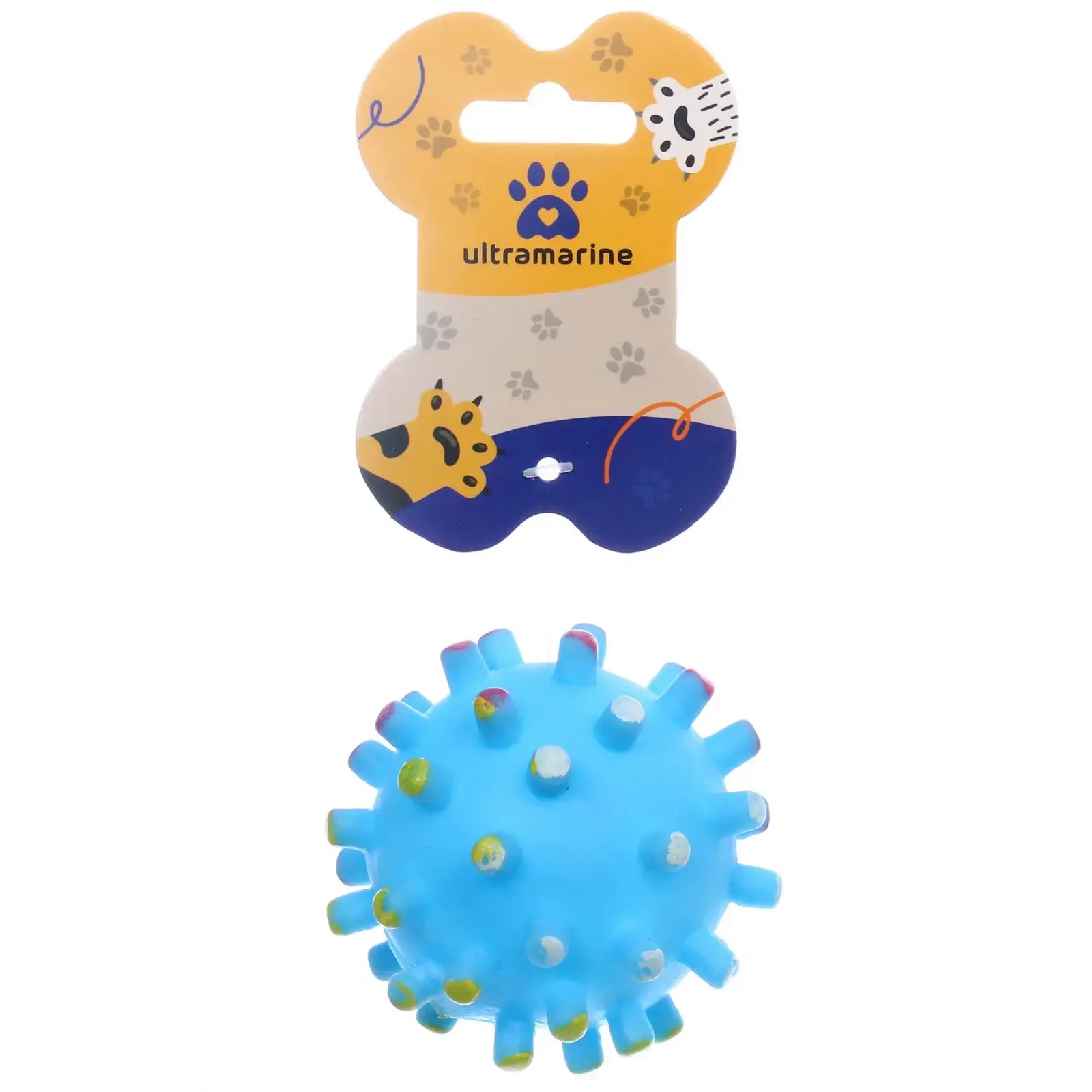 Мячик для собак «Зубочистик» с пищалкой, голубой, d 6,5см, для чистки зубов и массажа десен