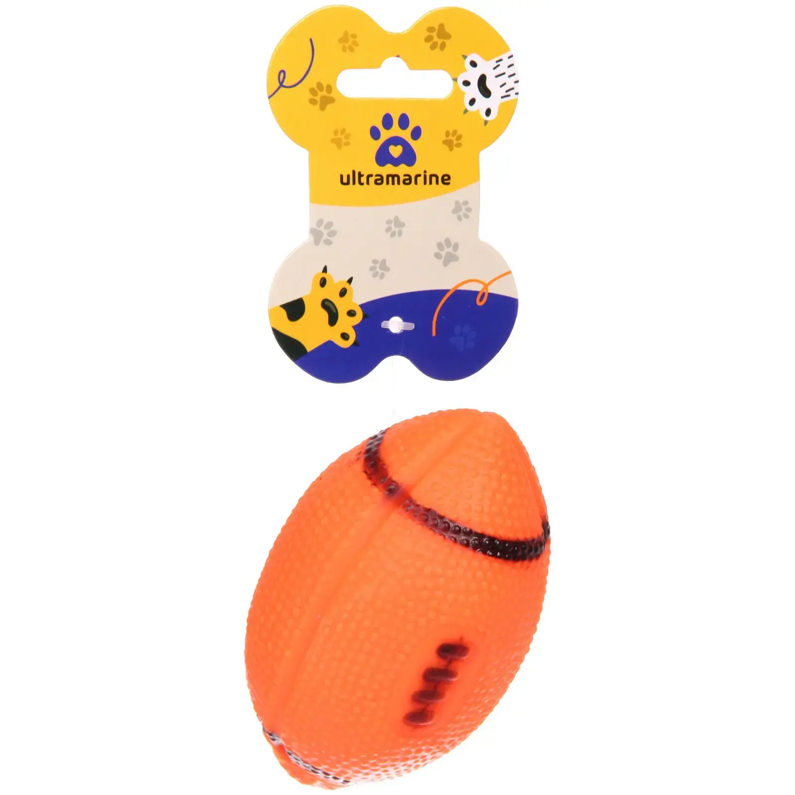 Резиновый мяч в форме регбийного снаряда создан для долгих тренировок и веселых игр с собакой любого размера. Рифленая поверхность обеспечивает надежный захват зубами, а яркий цвет помогает быстро найти игрушку на улице.