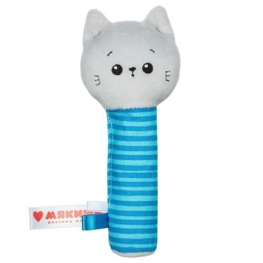 Размеры игрушки позволяют легко хвата́ть ее ручками — она идеально подходит для детской руки, а яркие цвета, изображение кошки и мягкая текстура делают игру интересной и увлекательной для малыша.