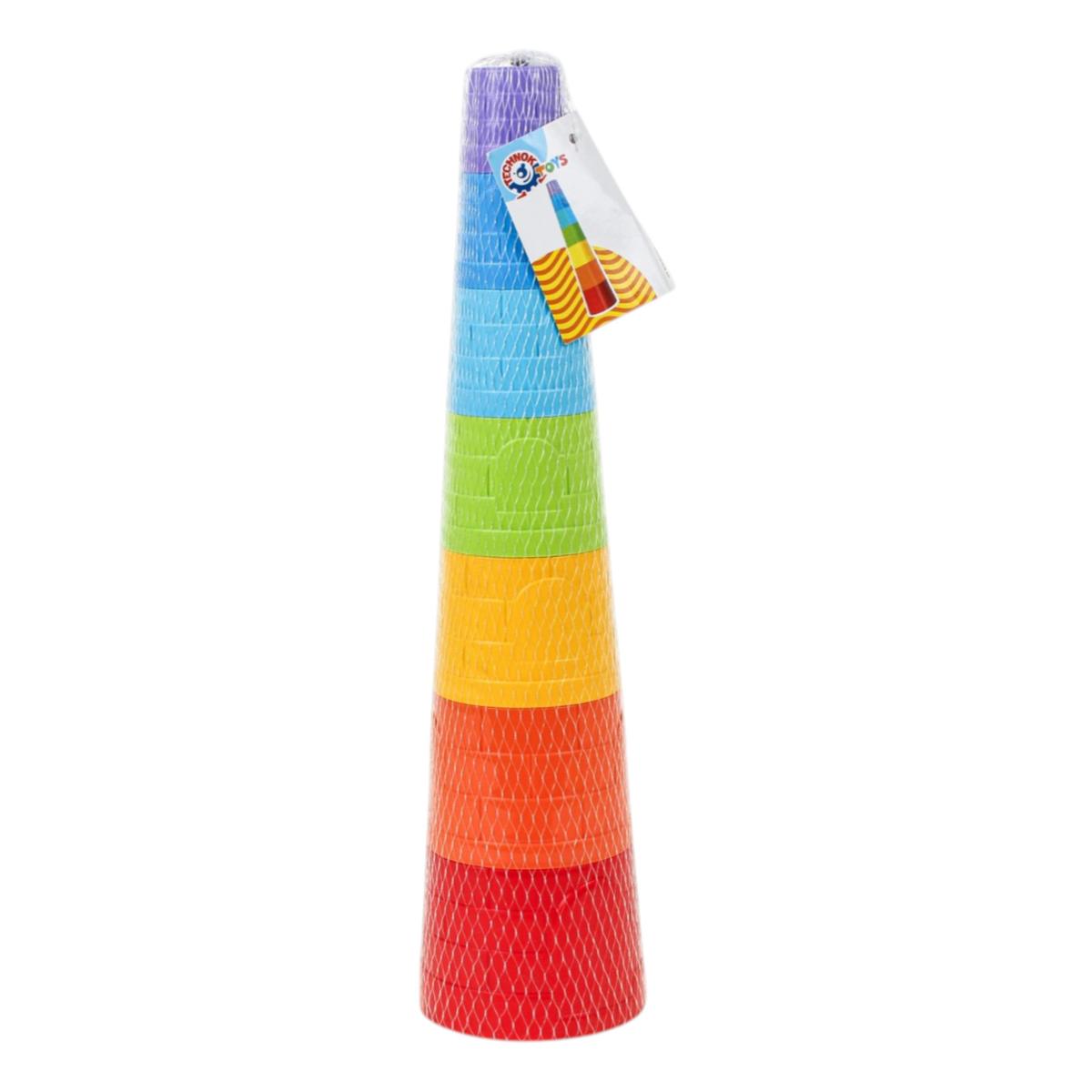 Игрушка пирамидка — это классический тренажер для обучения, который в игровой форме помогает ребенку освоить важные навыки. Набор состоит из семи элементов разного размера и цвета, которые можно собирать в высокую башню или вкладывать друг в друга. Эта игрушка идеально подходит для детей от 1 года, стимулируя их любознательность и желание исследовать окружающий мир через тактильные ощущения и визуальное восприятие.