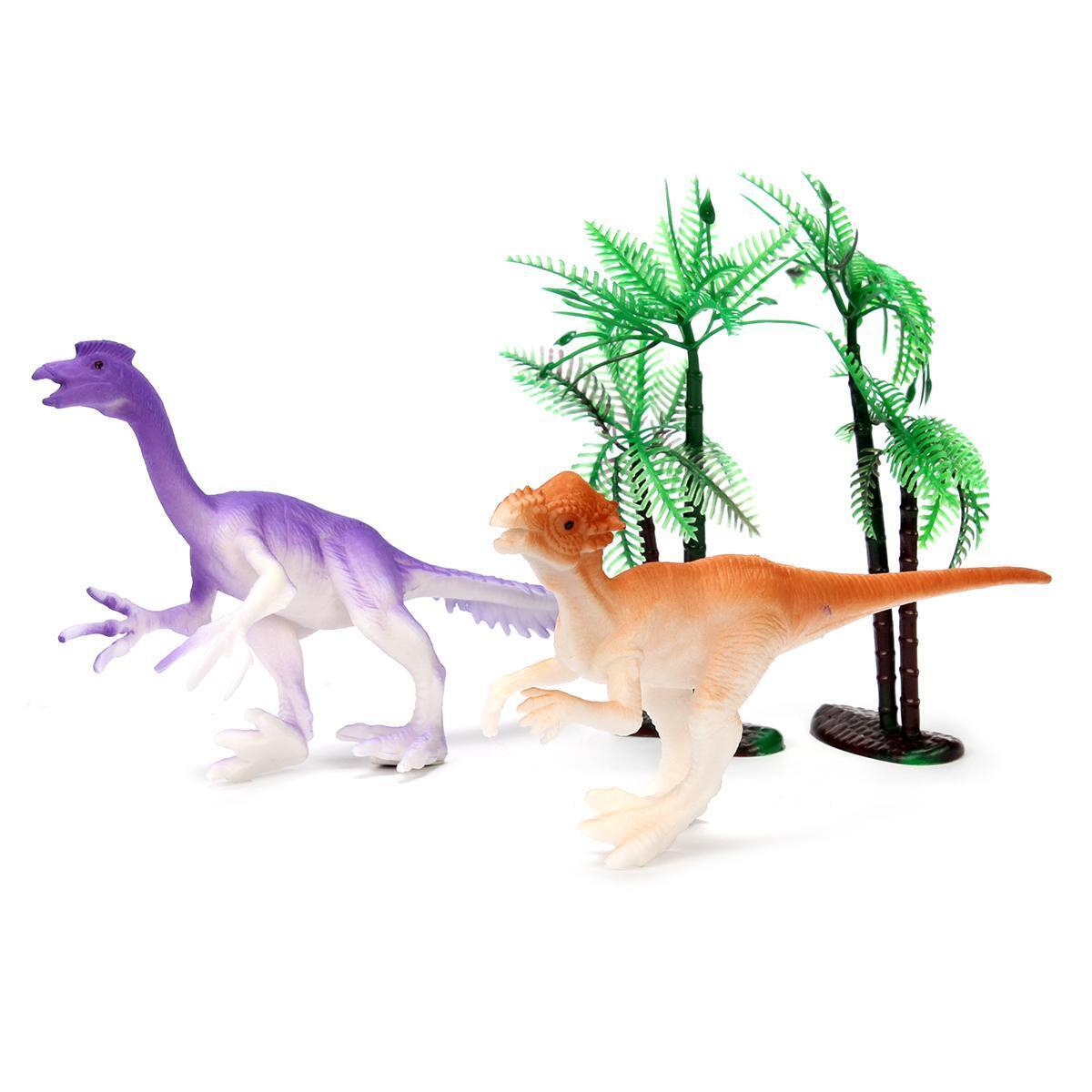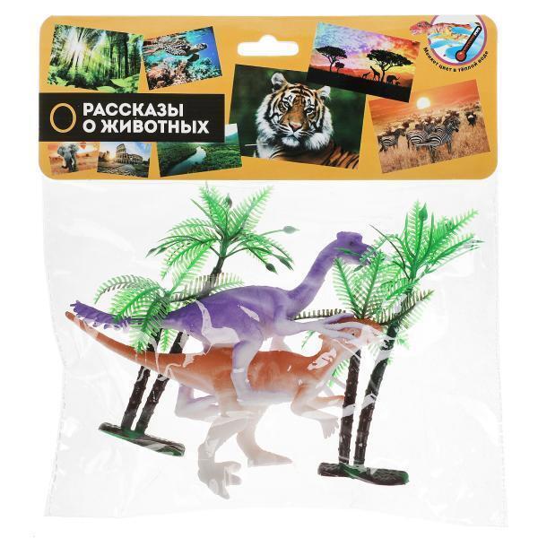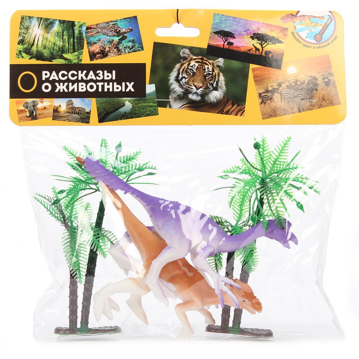 Набор «Динозавры»: 2 фигурки, меняют цвет в воде, ПВХ, 3 пальмы, «Играем вместе»