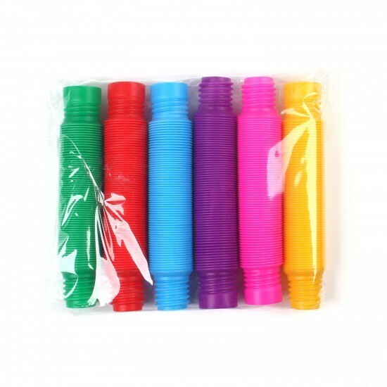 В комплект входят 6 трубок различных ярких цветов: фиолетовый, синий, розовый, желтый, красный и зеленый. Размер каждой трубки в сжатом состоянии составляет 22 см, а в раскрытом — до 77 см. Диаметр трубки — 4,5 см, что делает ее удобной для захвата и манипуляций. Поп Tub — это не просто игрушка, а целый мир для творчества и развития!