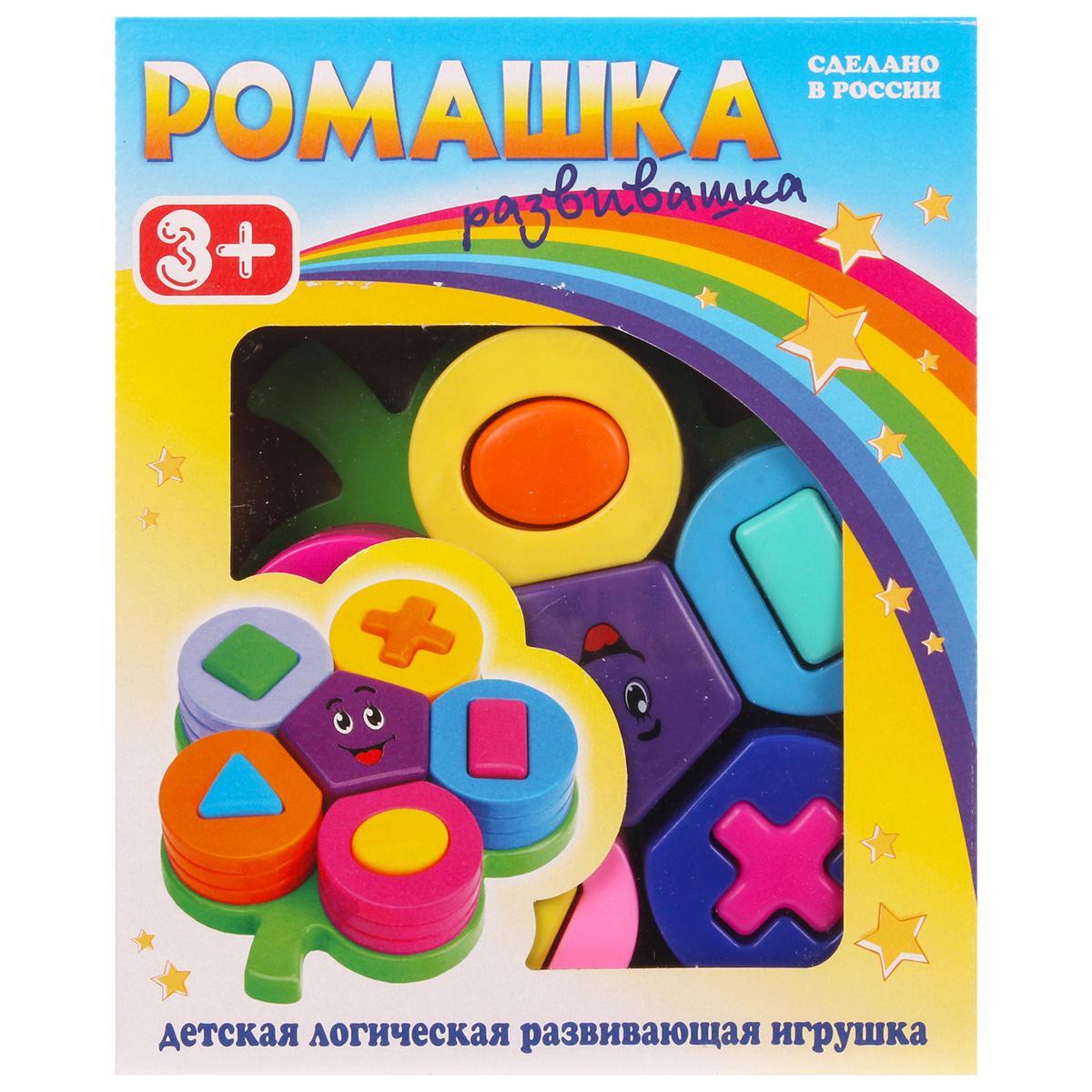 Сортер детский «Ромашка-развивашка», 15 элементов: геометрические фигуры, цветной пластик, для моторики, 3+