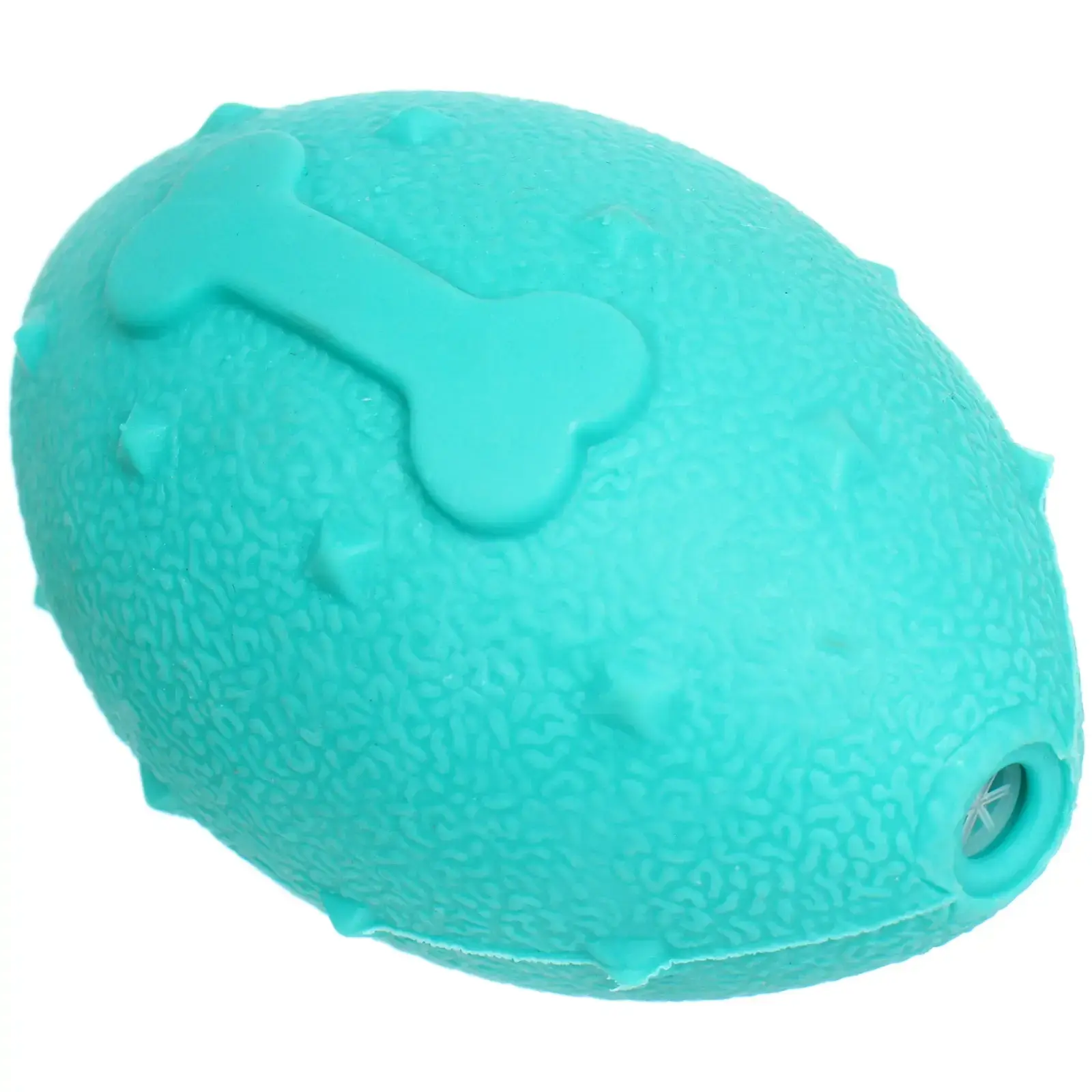 Игрушка подходит для собак средних, мелких и крупных пород. Она выполнена из безопасного термопластичного полиуретана, что гарантирует отсутствие вредных веществ. Мячик плавает в воде, что делает его идеальным для летних игр у водоема. Благодаря своей форме, игрушка может изменять траекторию полета при броске, что добавляет элемент неожиданности и азарта в игру.