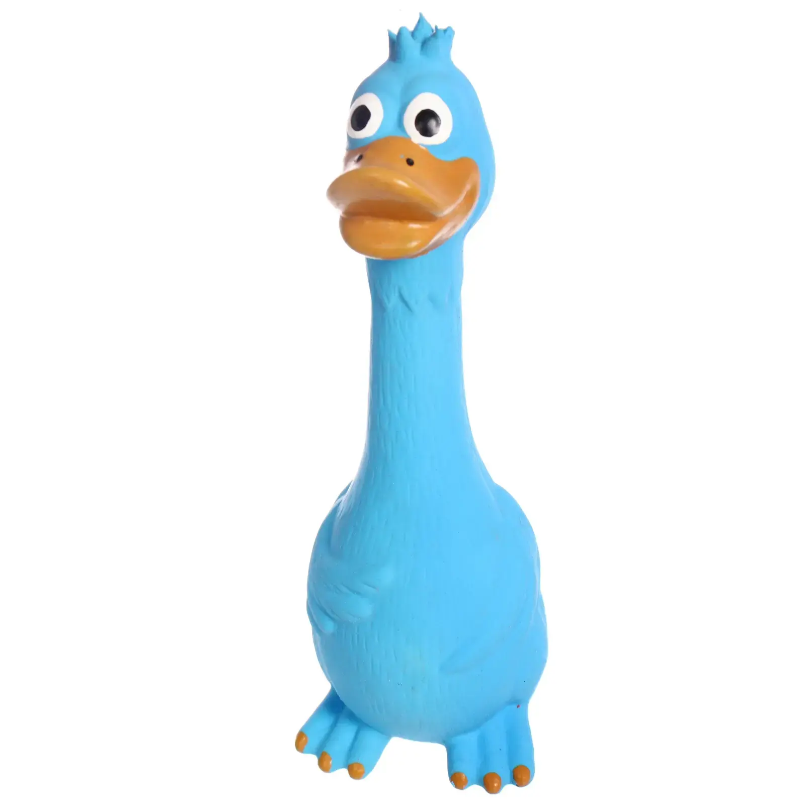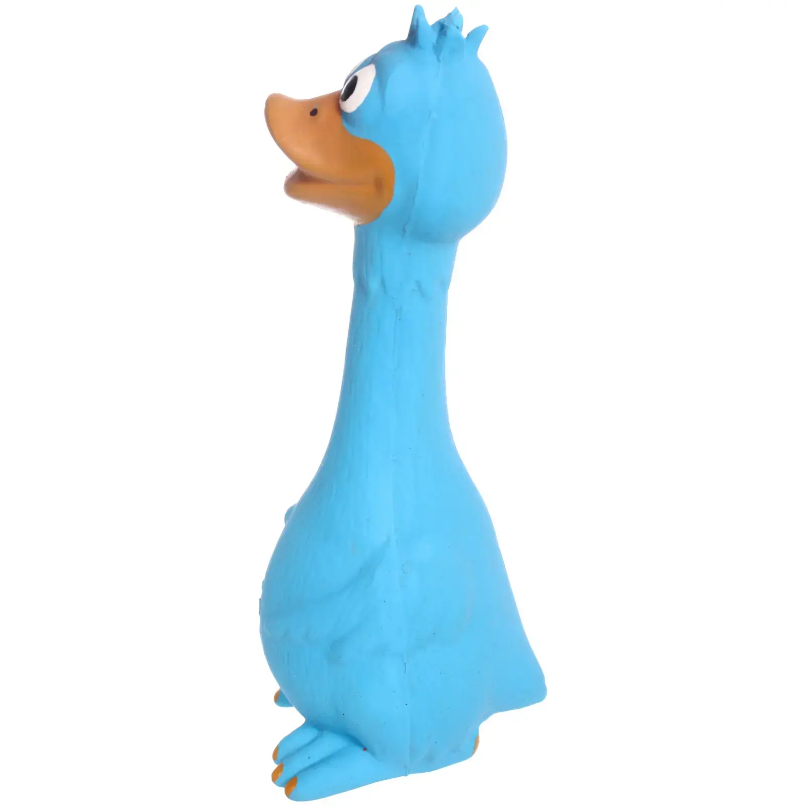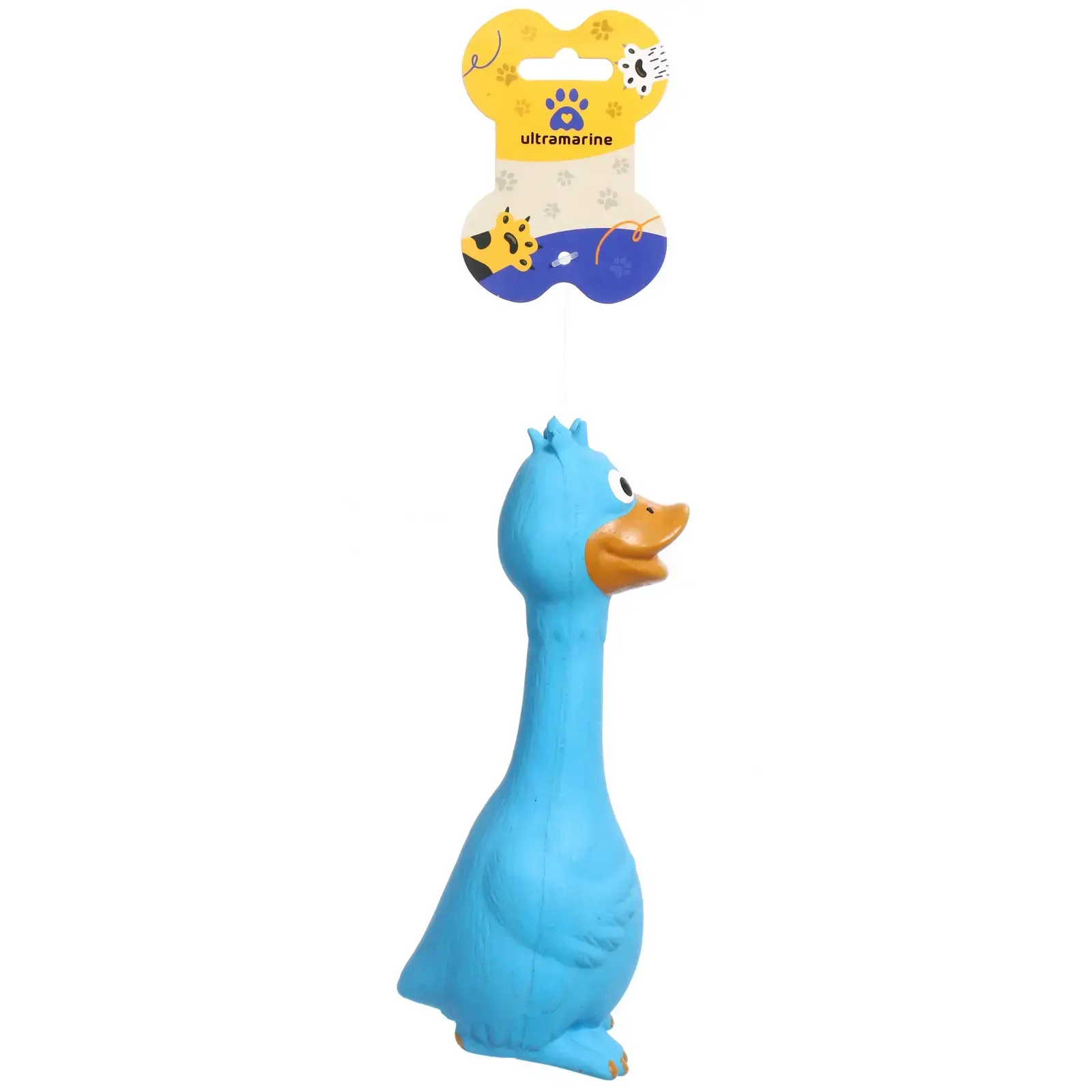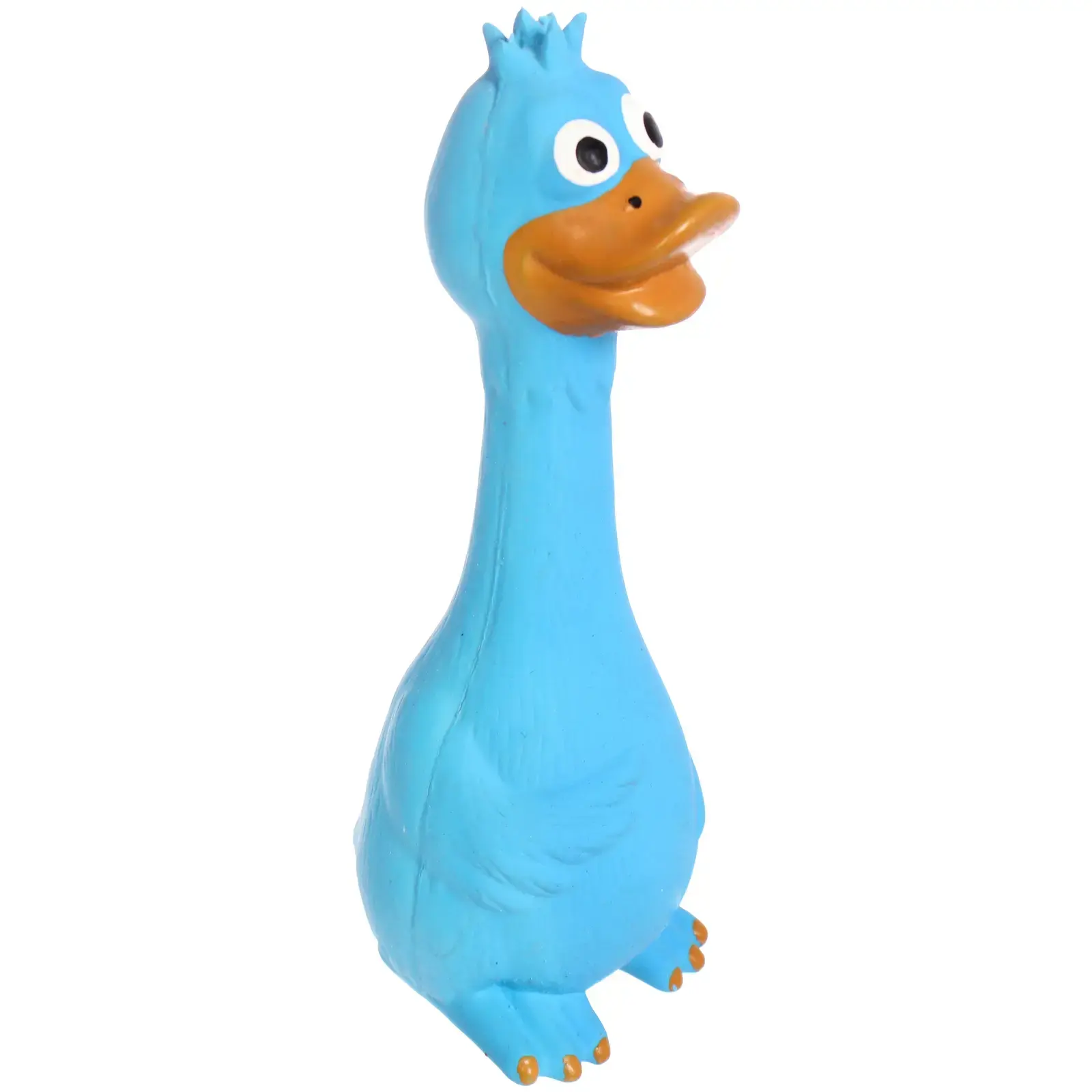 Игрушка идеально подходит для собак среднего и мелкого размера. Она выполнена из прочной резины, что делает её безопасной для жевания и активных игр. Утка легко удерживается в пасти, а её форма способствует интересным играм, как в помещении, так и на улице.