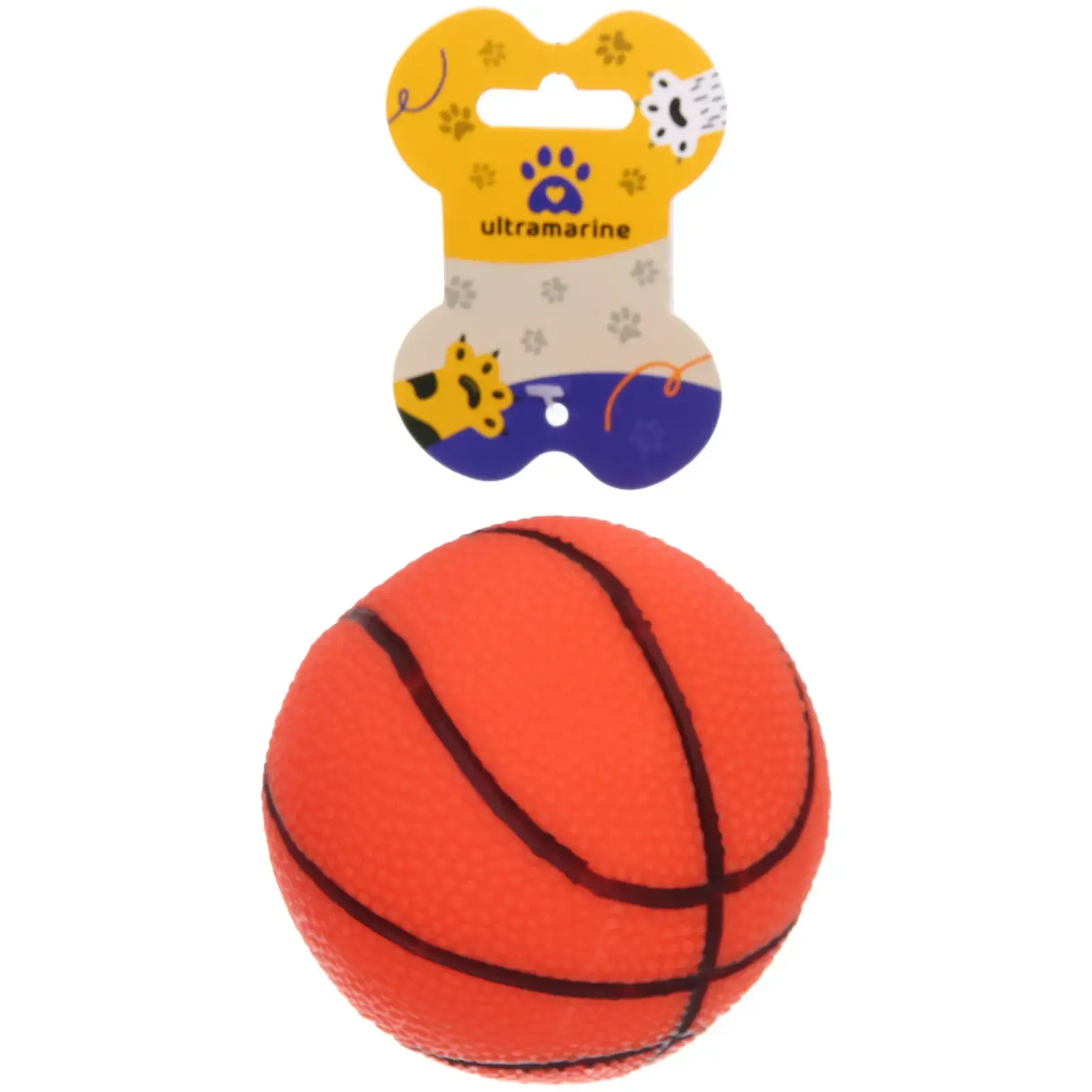 Размер игрушки составляет 10 см в диаметре, что делает её удобной для игры. Яркий оранжевый цвет с черными линиями, имитирующими баскетбольный мяч, добавляет привлекательности. Эта игрушка станет отличным подарком для вашего питомца и поможет укрепить вашу связь во время совместных игр.