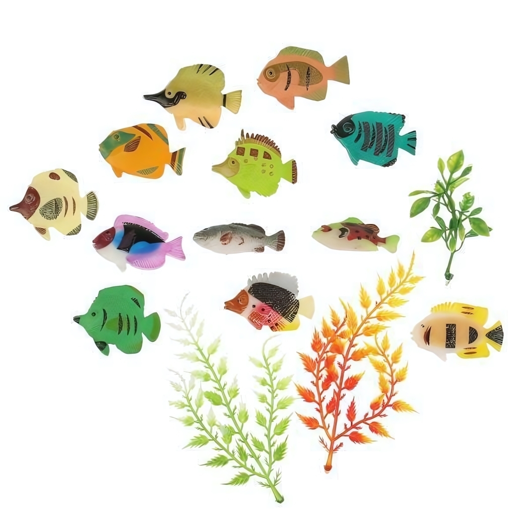Игрушка "Рифовые рыбки", 12 рыбок и 4 водоросли, пластизоль, для игр и декора