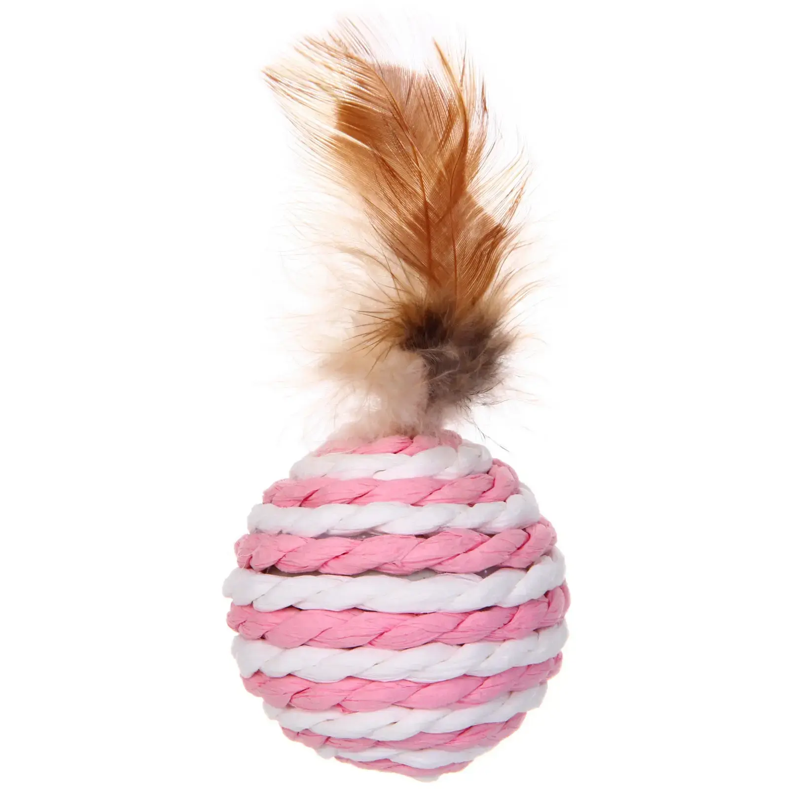 Игрушка-шарик для кошек 'ИГРУЛИК', розовый/белый, d-5см, с пером, интерактивная