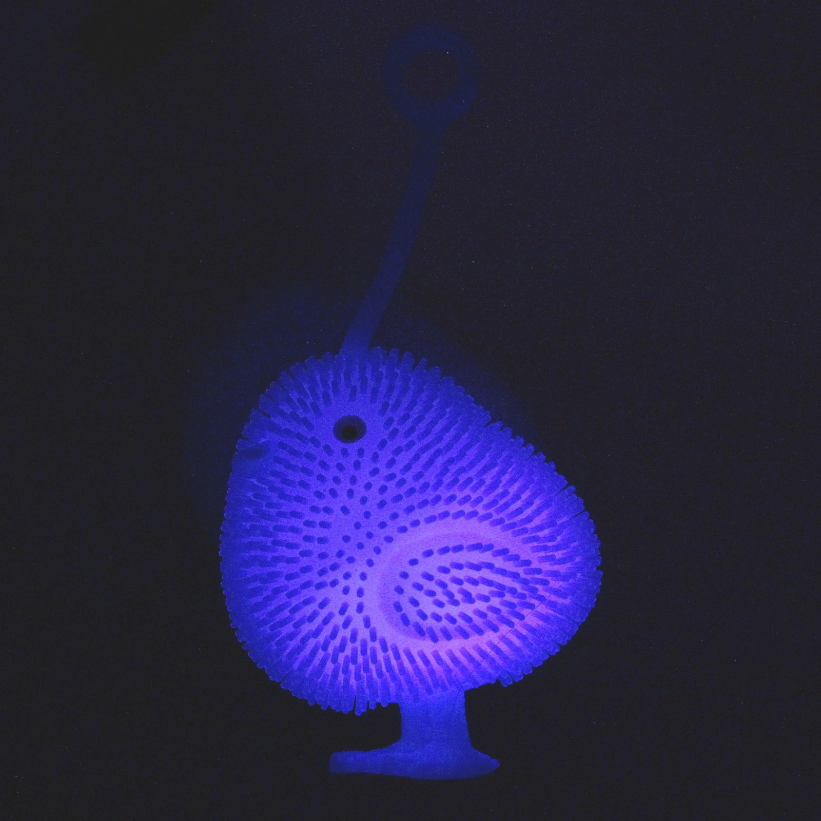Представьте, как приятно провести рукой по этой яркой массажной щетке, чувствуя, как её мягкие шипы стимулируют кожу. А вечером она превращается в уютный ночник благодаря встроенной подсветке.