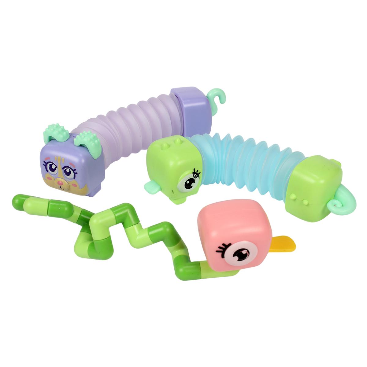 Игрушка представлена в ассортименте различных форм: гусеница, змея, птичка и другие очаровательные персонажи.