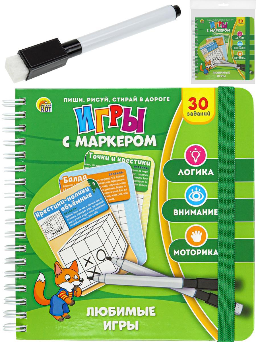 Книжка-тренажер 'Любимые игры' с маркером, 30 заданий, размер 14,6х1,6х1,6см
