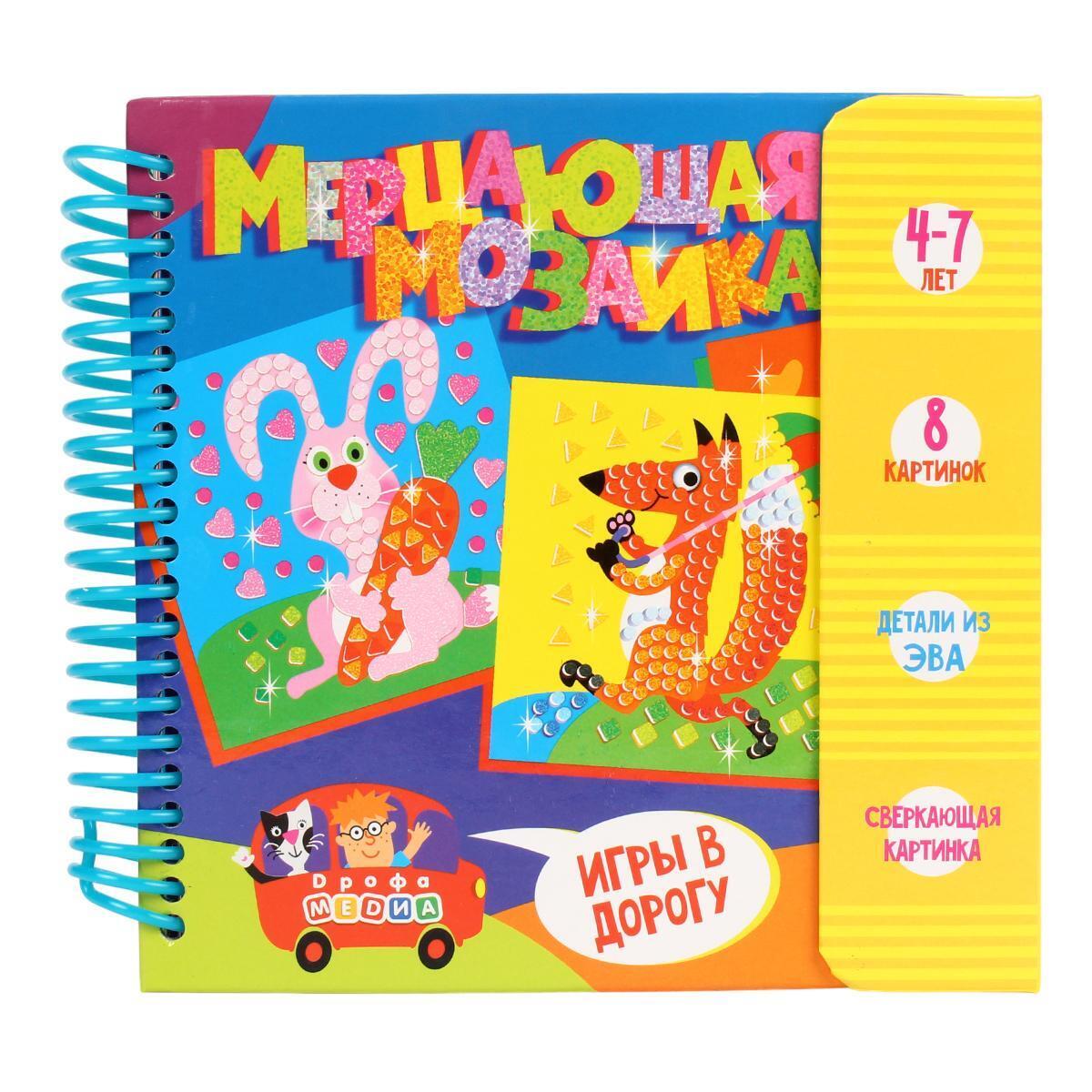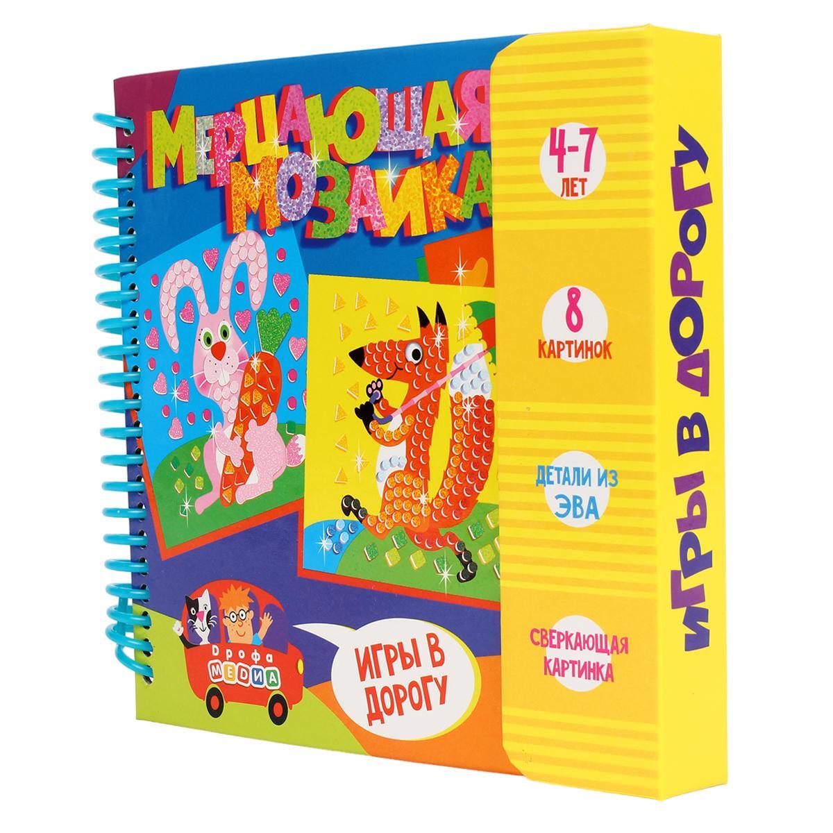 Мерцающая мозаика, игры в дорогу, 8 картинок, детали ЭВА, 4-7 лет, развивает моторику