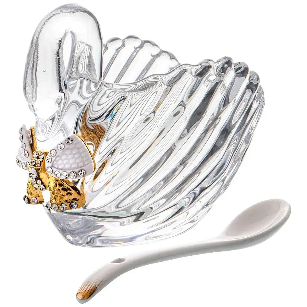 Икорница «Лебедь Venezia» с ложкой 95 мл, коллекция Muza, стекло/металл, 11×6×9,5 см