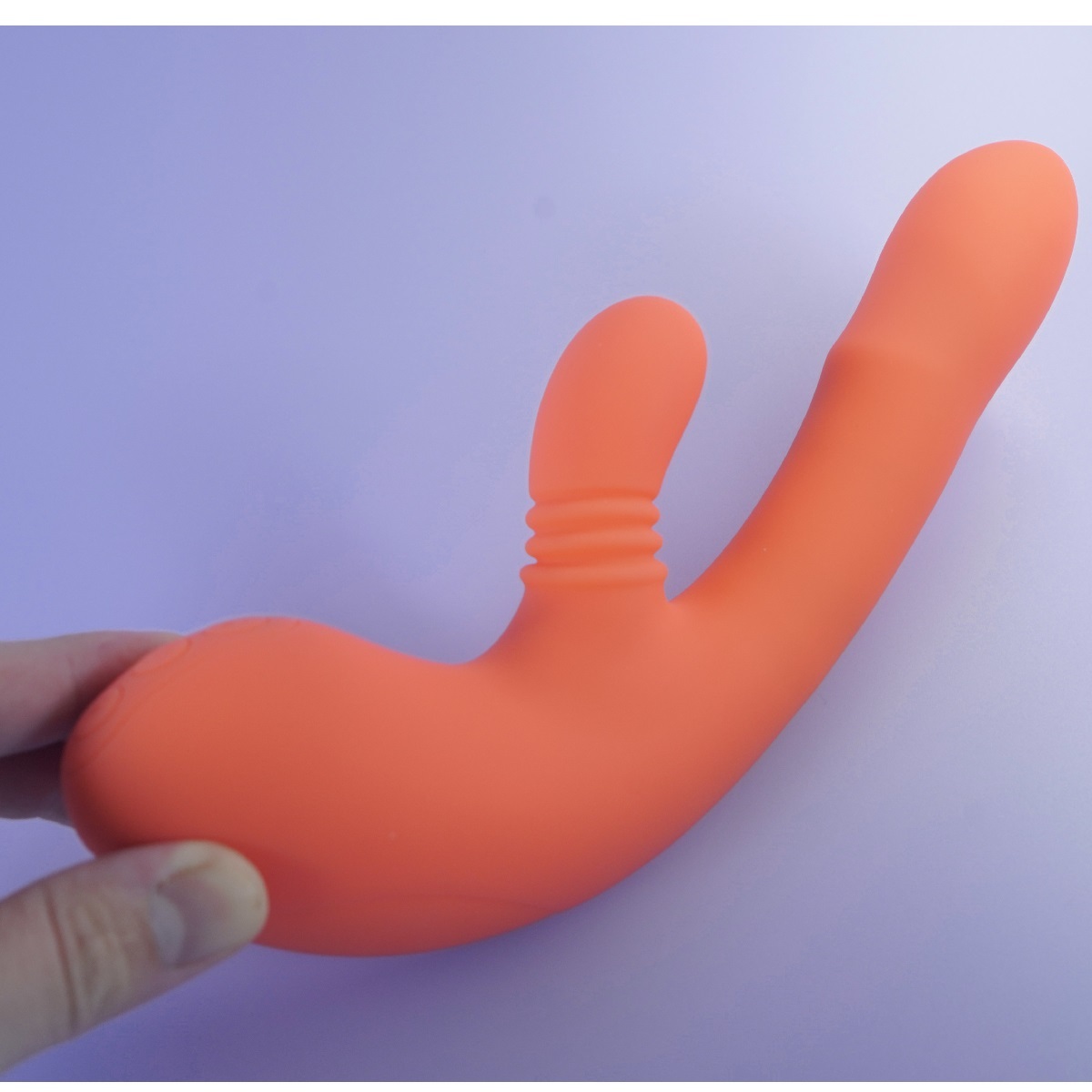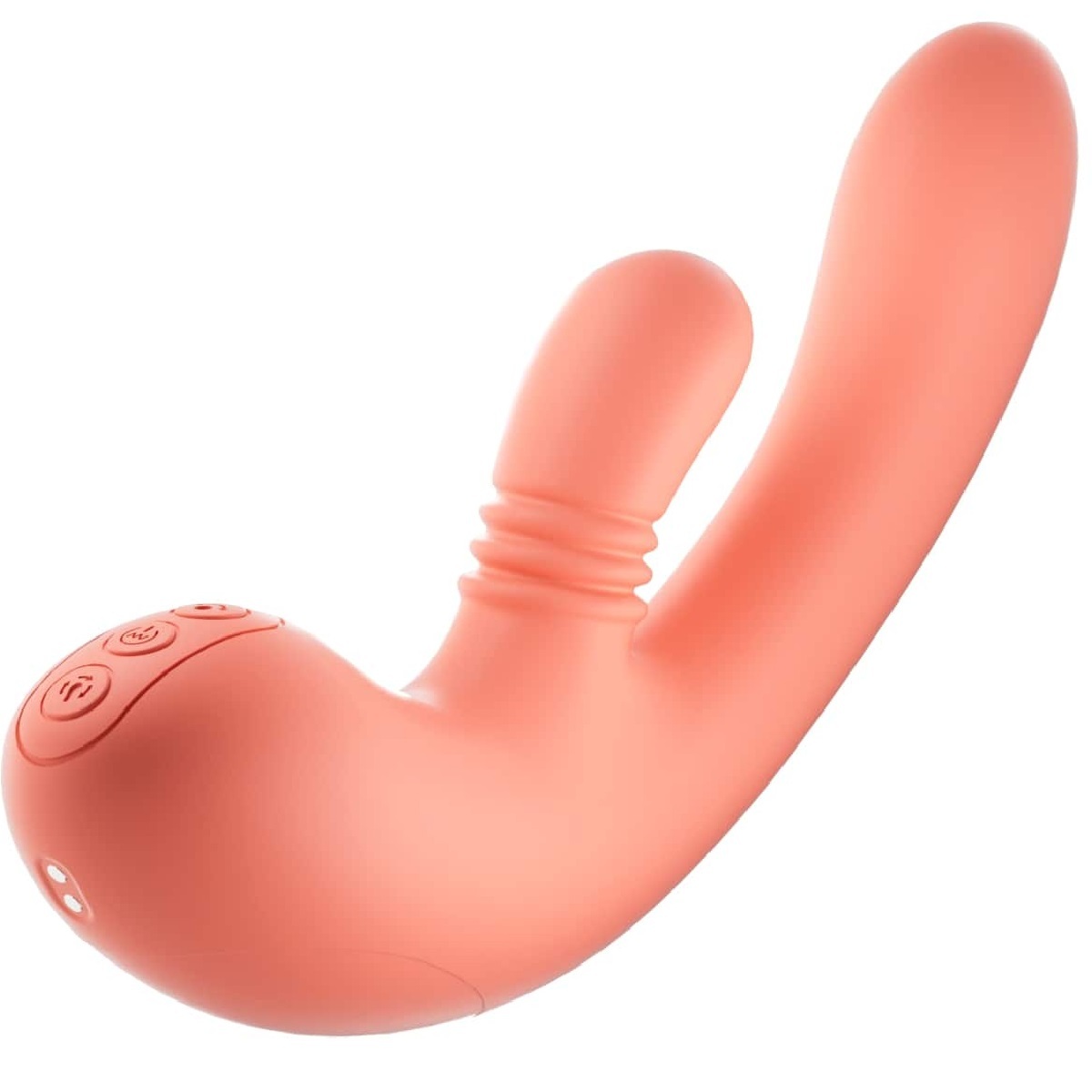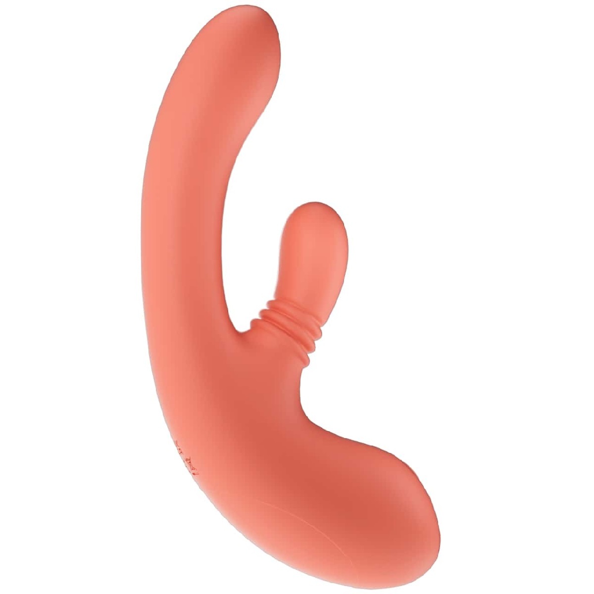 Вибратор кролик vibella 27 см, коралловый, силикон, двойная мощность 10 режимов, водонепроницаемый