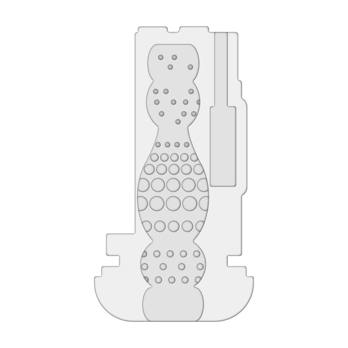 Прозрачное окно в корпусе с подсветкой визуально демонстрирует работу механизма, добавляя элемент вовлечения. Сменный внутренний элемент из TPE с рельефной текстурой обеспечивает мягкость и реалистичность контакта. Корпус выполнен из анодированного пластика, что делает устройство прочным и долговечным.