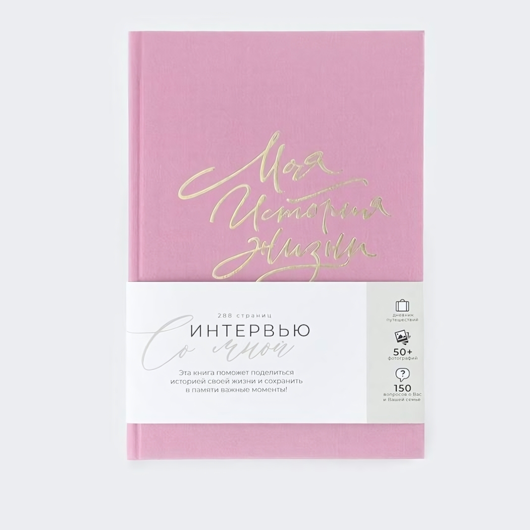 Этот планинг формата A5 станет вашим надежным помощником в сохранении воспоминаний и важных моментов жизни. Твердая обложка из текстиля розового цвета с золотистым тиснением 'Моя История Жизни' придает ему элегантный вид.
