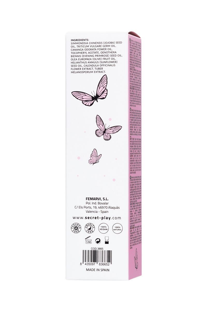 Продукт произведен в Испании компанией Secret Play с соблюдением строгих европейских стандартов качества. Объем 50 мл рассчитан на 3-4 месяца регулярного использования.