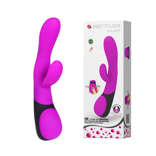 Вибратор интимный «Pretty Love Hilary» с клиторальным стимулятором, 12 режимов, силикон, малиновый