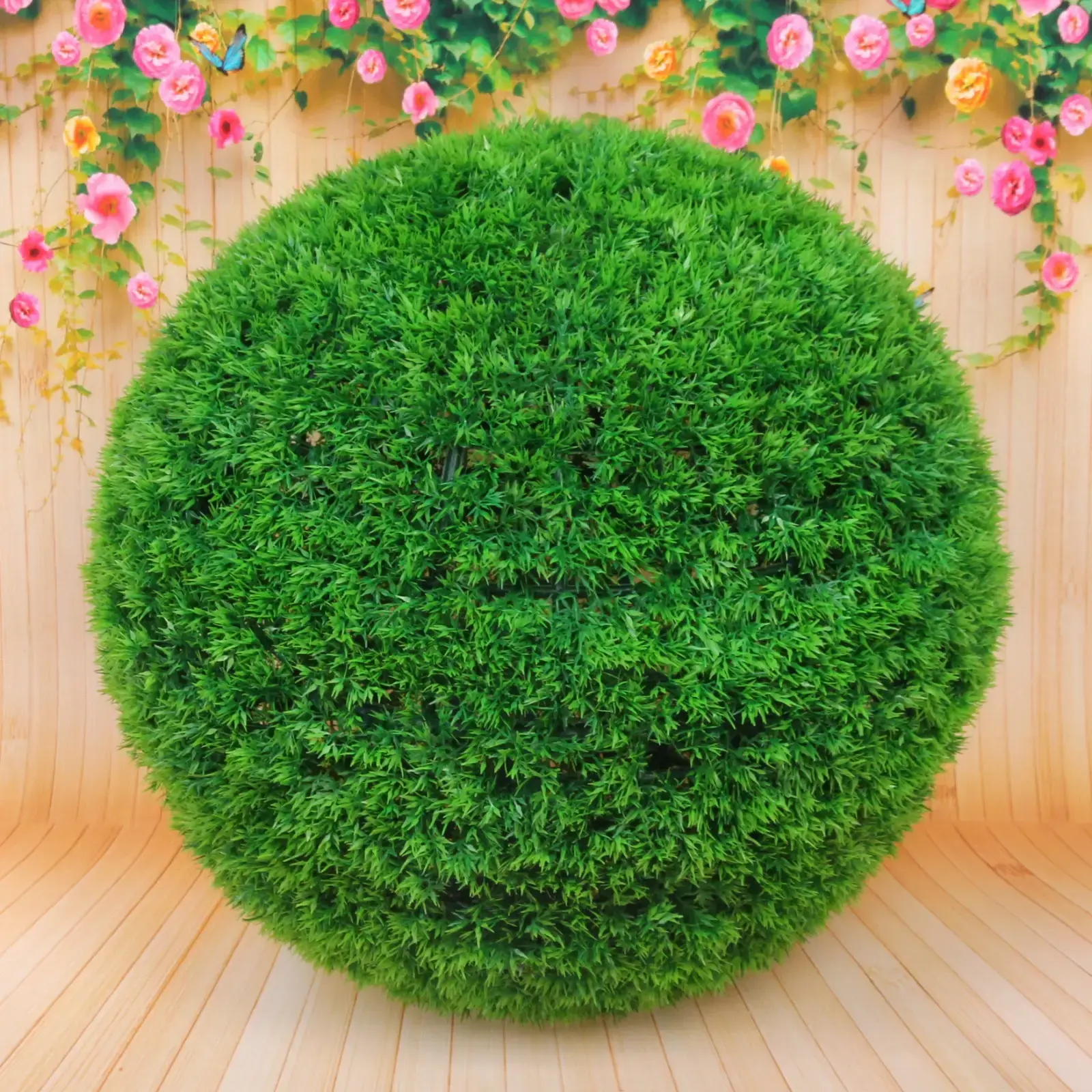 Размер шара составляет 53 см в диаметре, что делает его заметным элементом декора. Изготовлено из качественного ПВХ, оно имитирует натуральную зелень и создает эффект густоты. Искусственное растение легко вписывается в любой стиль интерьера, будь то современный, классический или минималистичный.