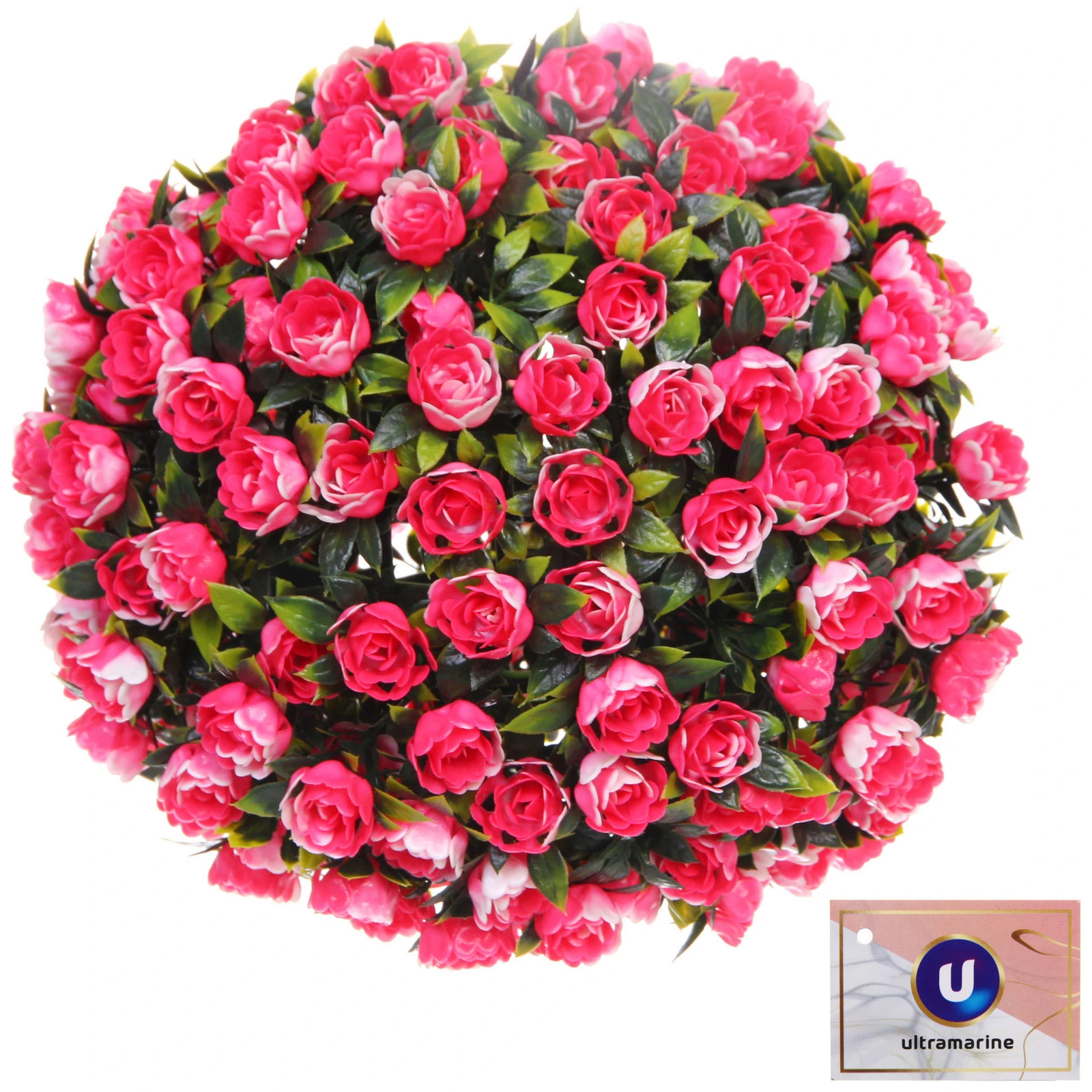 Изделие выполнено из прочного пластика, устойчивого к воздействию влаги. Диаметр шара — 23 см, что делает его универсальным для различных декоративных задач: от создания акцентных композиций до оформления ландшафтного дизайна. Искусственные цветы с плавным переходом от насыщенного розового к более светлым краям лепестков придают композиции живой и аккуратный вид.