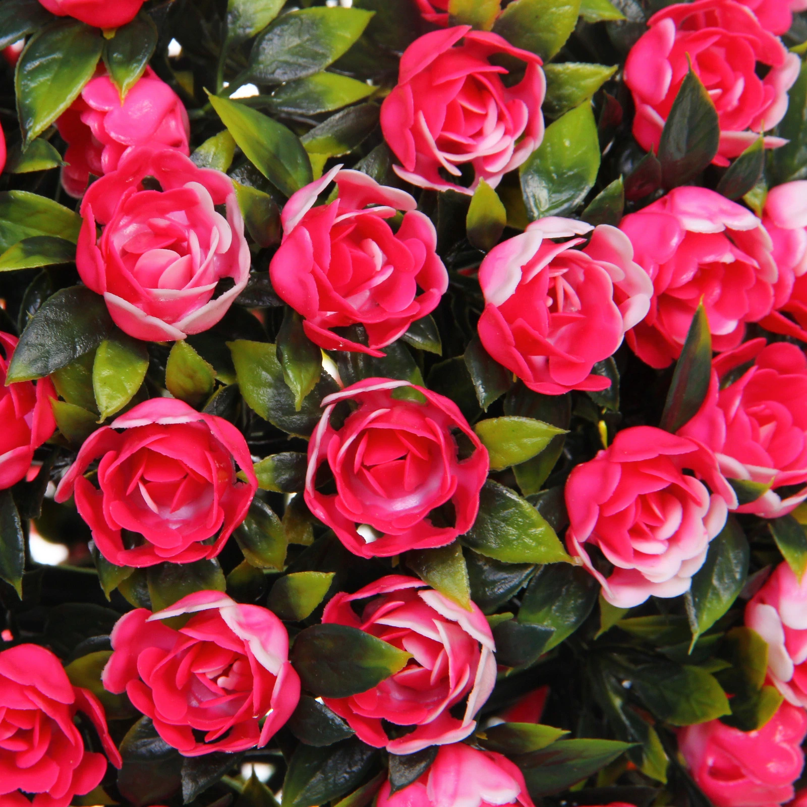 Искусственное растение шар «Самшит» диаметром 23 см — это простой способ добавить пространству выразительности и уюта без полива и сезонного ухода. Насыщенный оттенок фуксии в сочетании с зелеными листьями делает композицию заметной деталью в любом оформлении — от квартиры до открытой террасы.