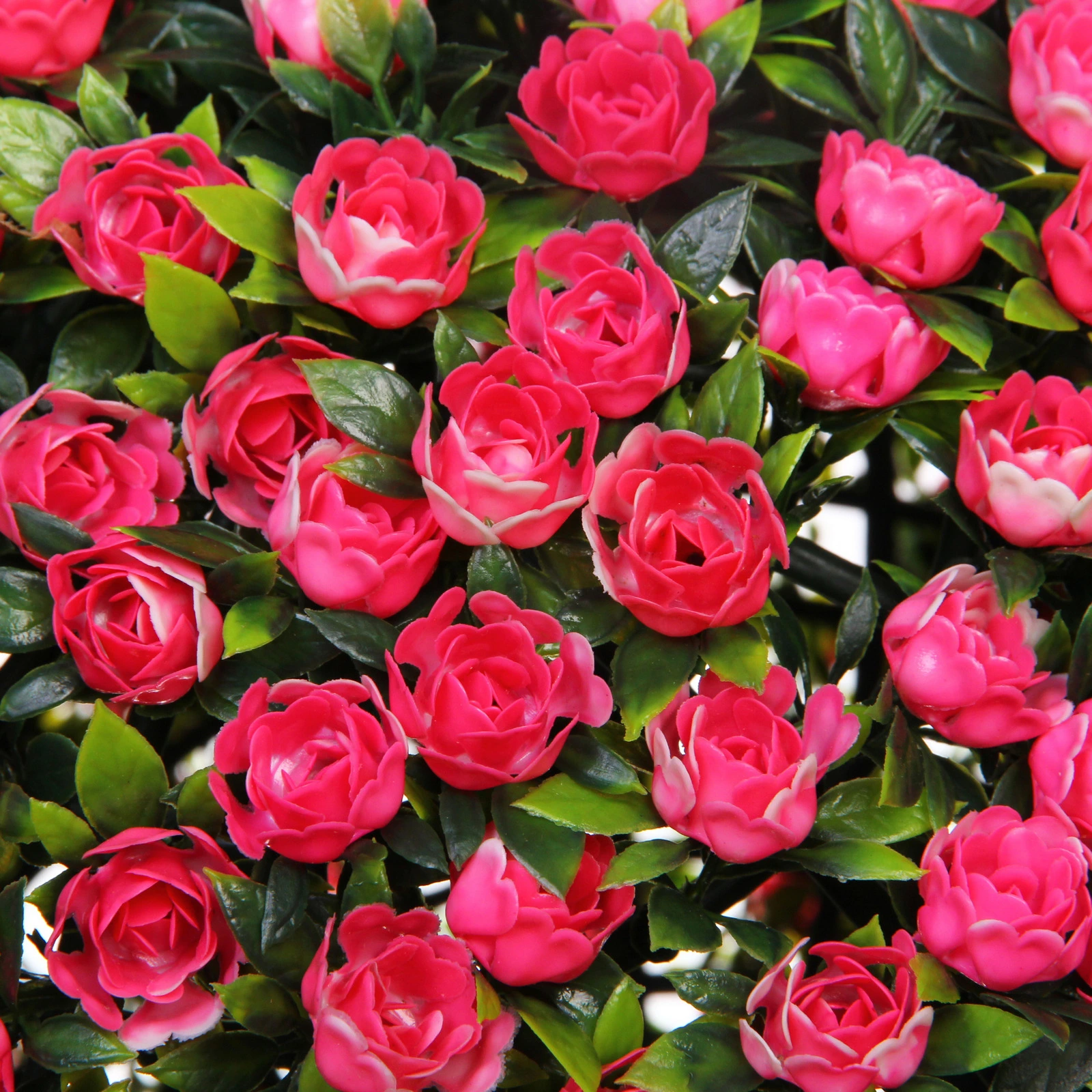 - Эффектный внешний вид: Густое покрытие из розовых цветов фуксии и зелёных листьев создаёт впечатление живого, ухоженного растения.
