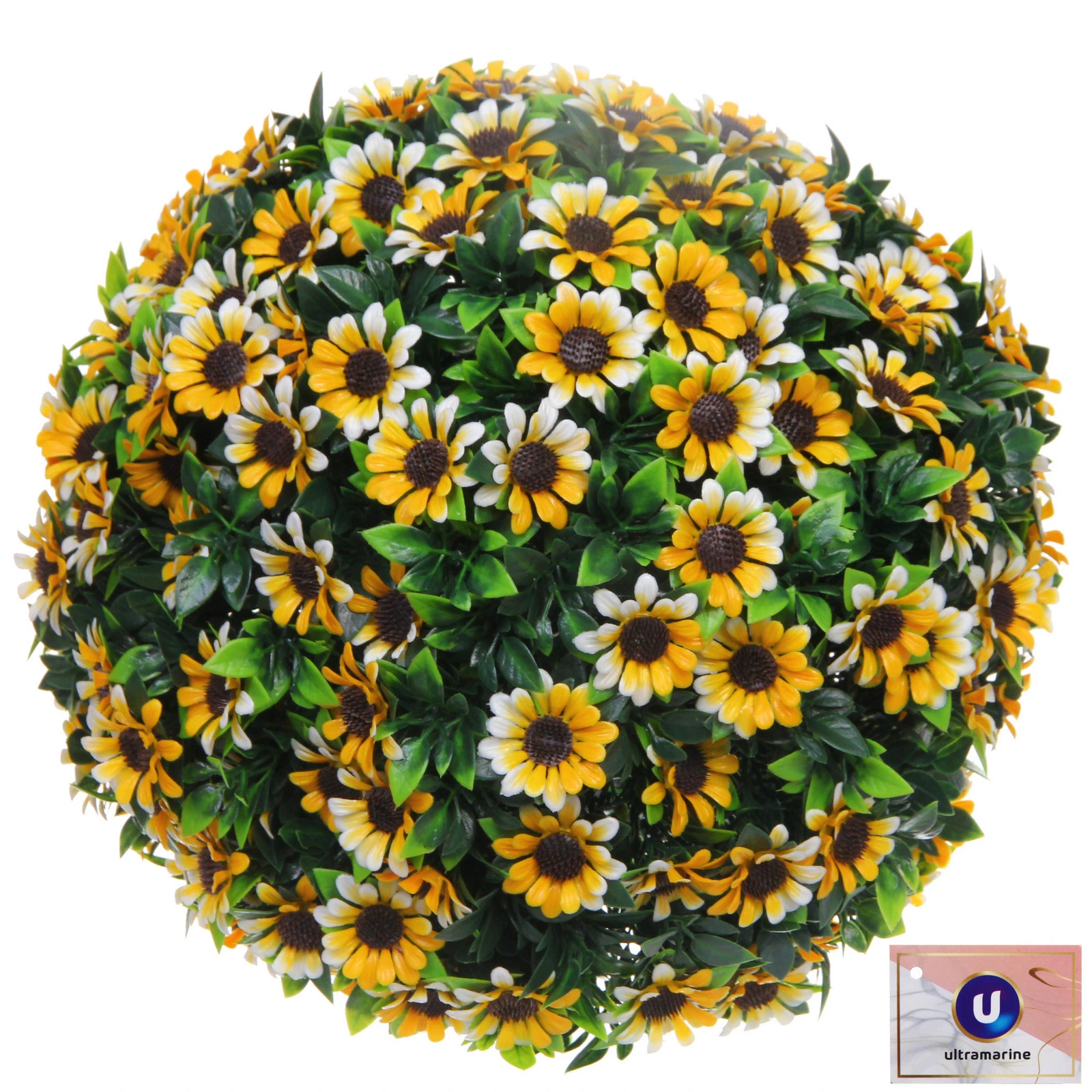 Создайте уютную и праздничную атмосферу в любом уголке вашего дома или сада с помощью декоративного шара из искусственных цветов. Эта стильная композиция круглой формы, густо усыпанная мелкими оранжево-жёлтыми цветами и зелёной листвой, станет идеальным решением для тех, кто ценит красоту без хлопот. Шар не требует полива, не боится солнца и дождя, сохраняя свой безупречный вид годами.