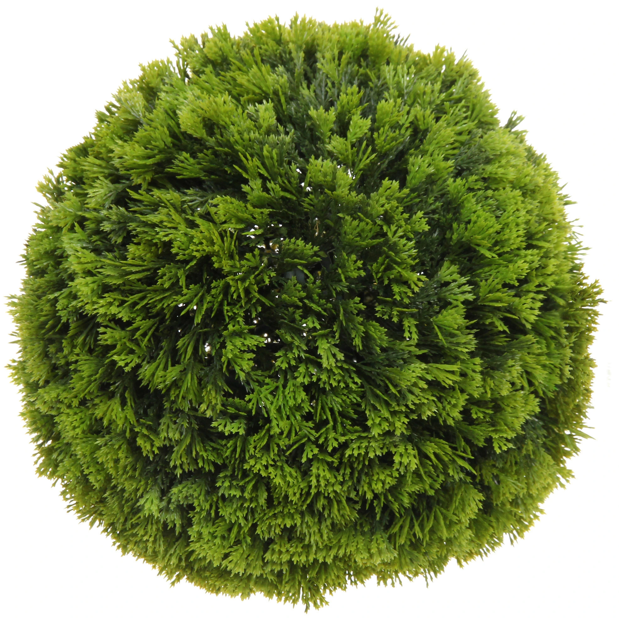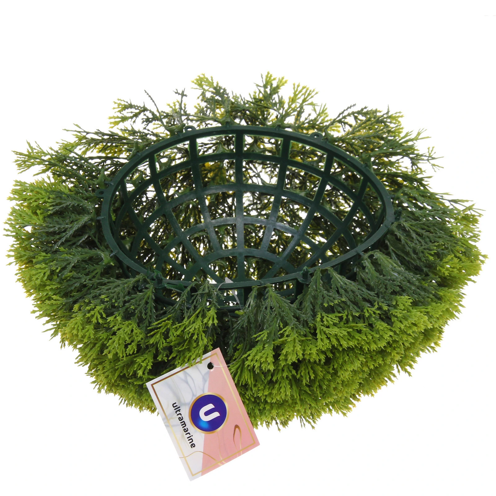 Изделие поставляется в виде двух полусфер, которые надежно и легко соединяются между собой, образуя ровную и плотную сферу диаметром 25 см. Вы можете подвесить его, установить в напольное кашпо или использовать как самостоятельный элемент ландшафтного дизайна. Это практичный выбор, который не требует полива, обрезки и солнечного света, оставаясь безупречным в любых условиях.