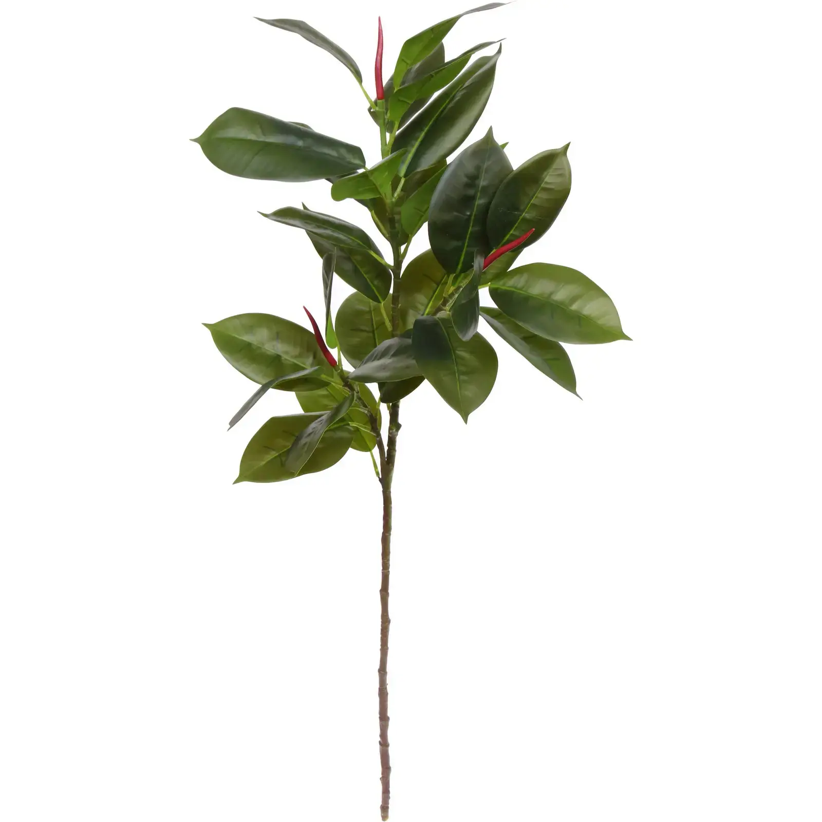 Ветка Фикуса искусственная 100см, зеленая, пластик, для декора дома и офиса