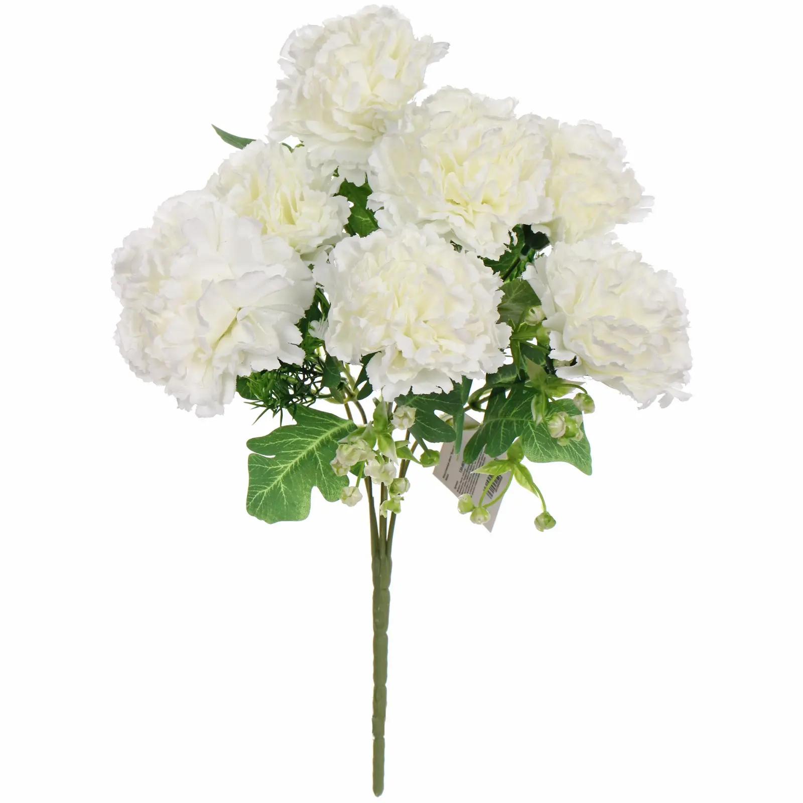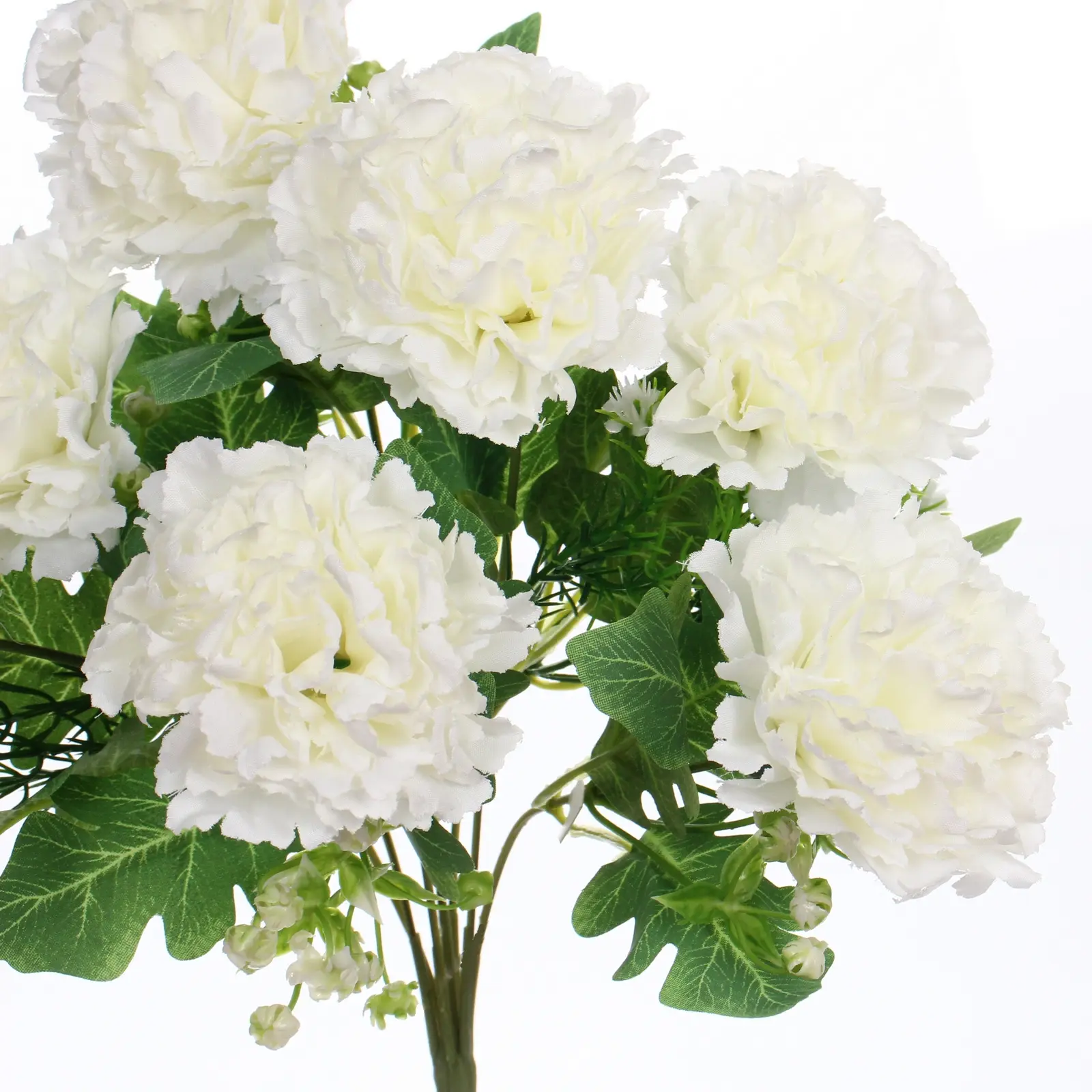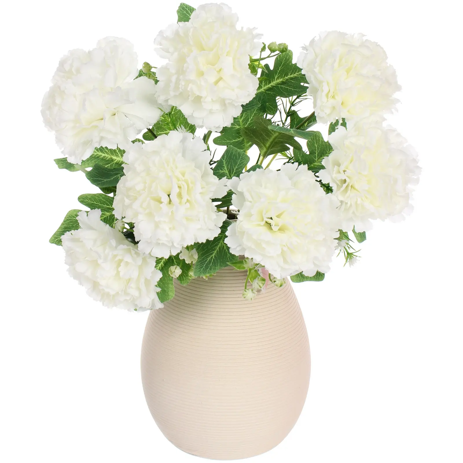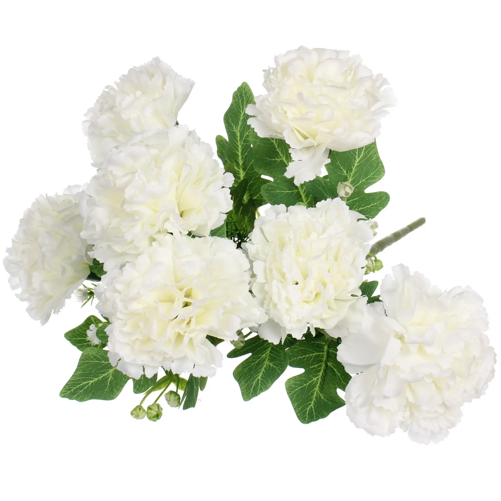 Цветы выполнены из высококачественного пластика и полиэстера, что обеспечивает долговечность и сохранение прекрасного вида на долгое время. Компактный букет из 7 белых гвоздик легко размещается в вазу или композицию, гармонично дополняя любой интерьер. Эти искусственные цветы не требуют ухода, полива или особого ухода, что делает их особенно практичными для занятых людей, желающих постоянно иметь элегантное украшение.