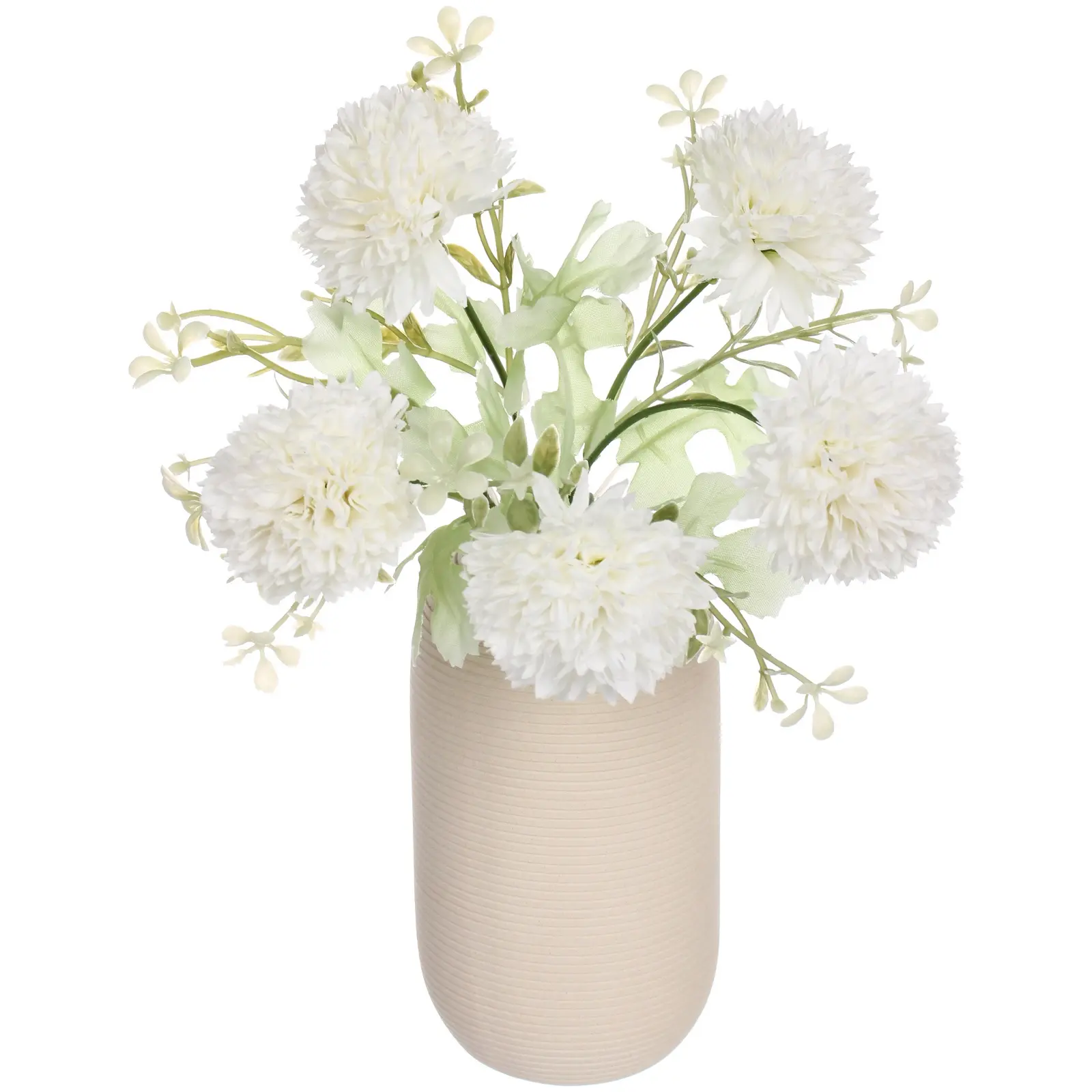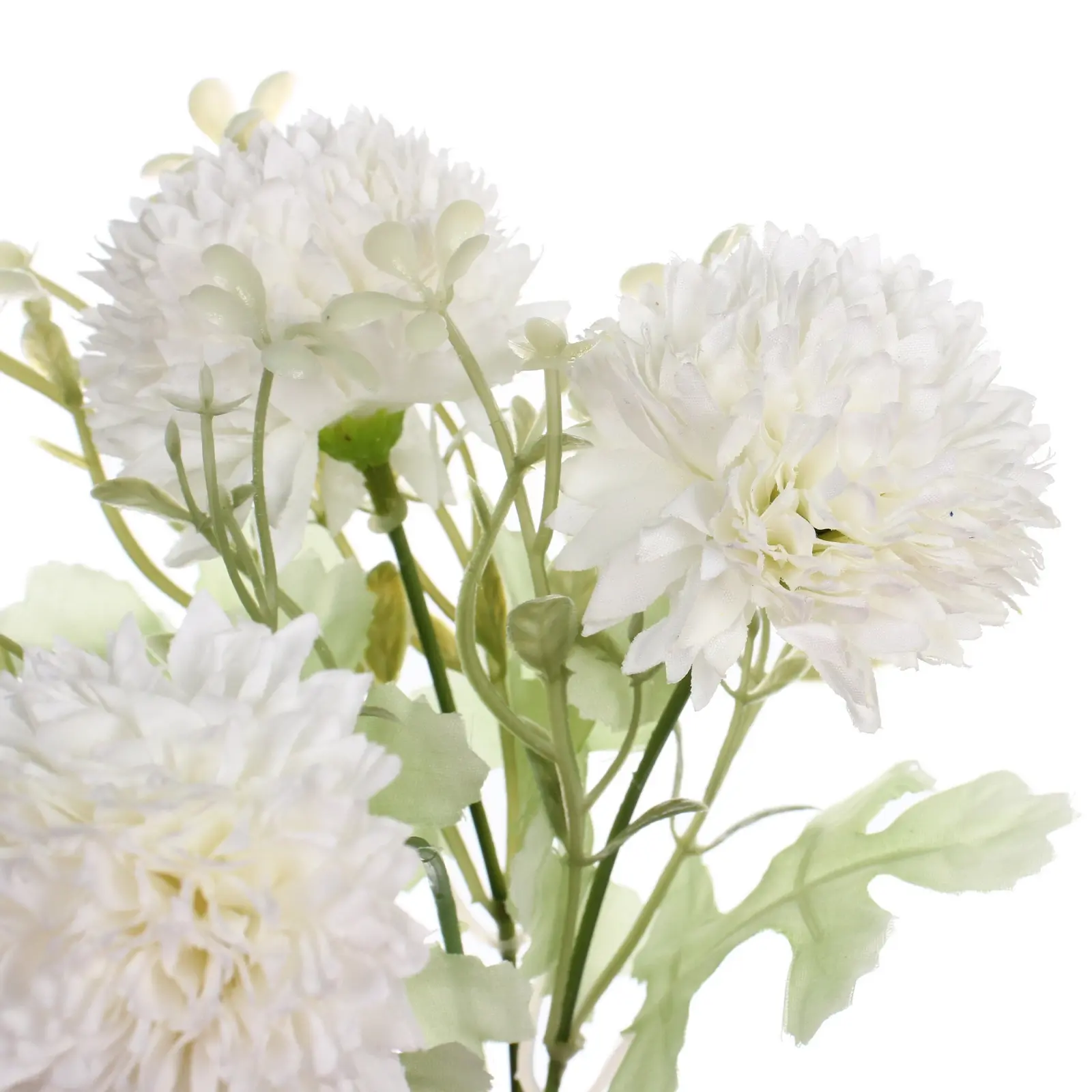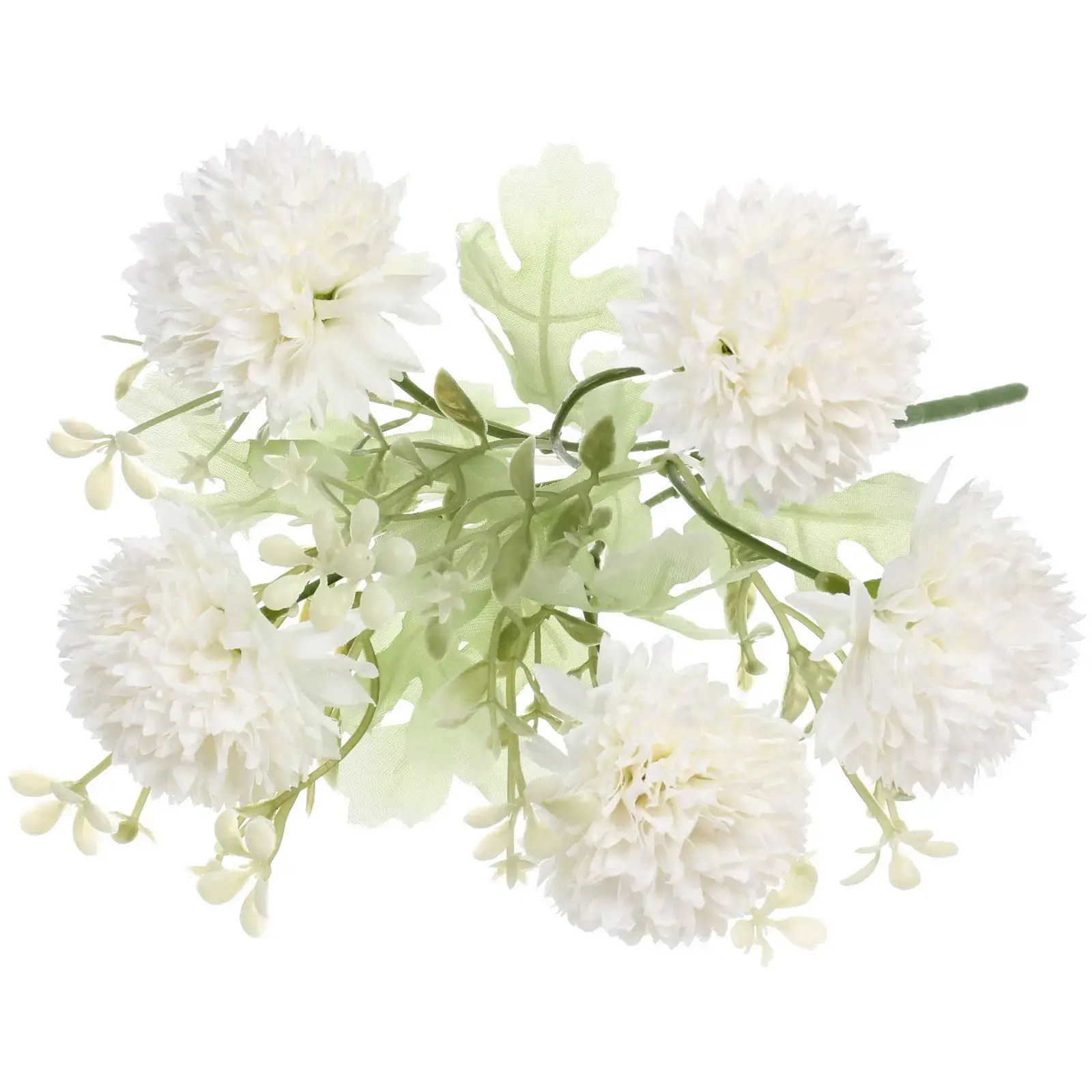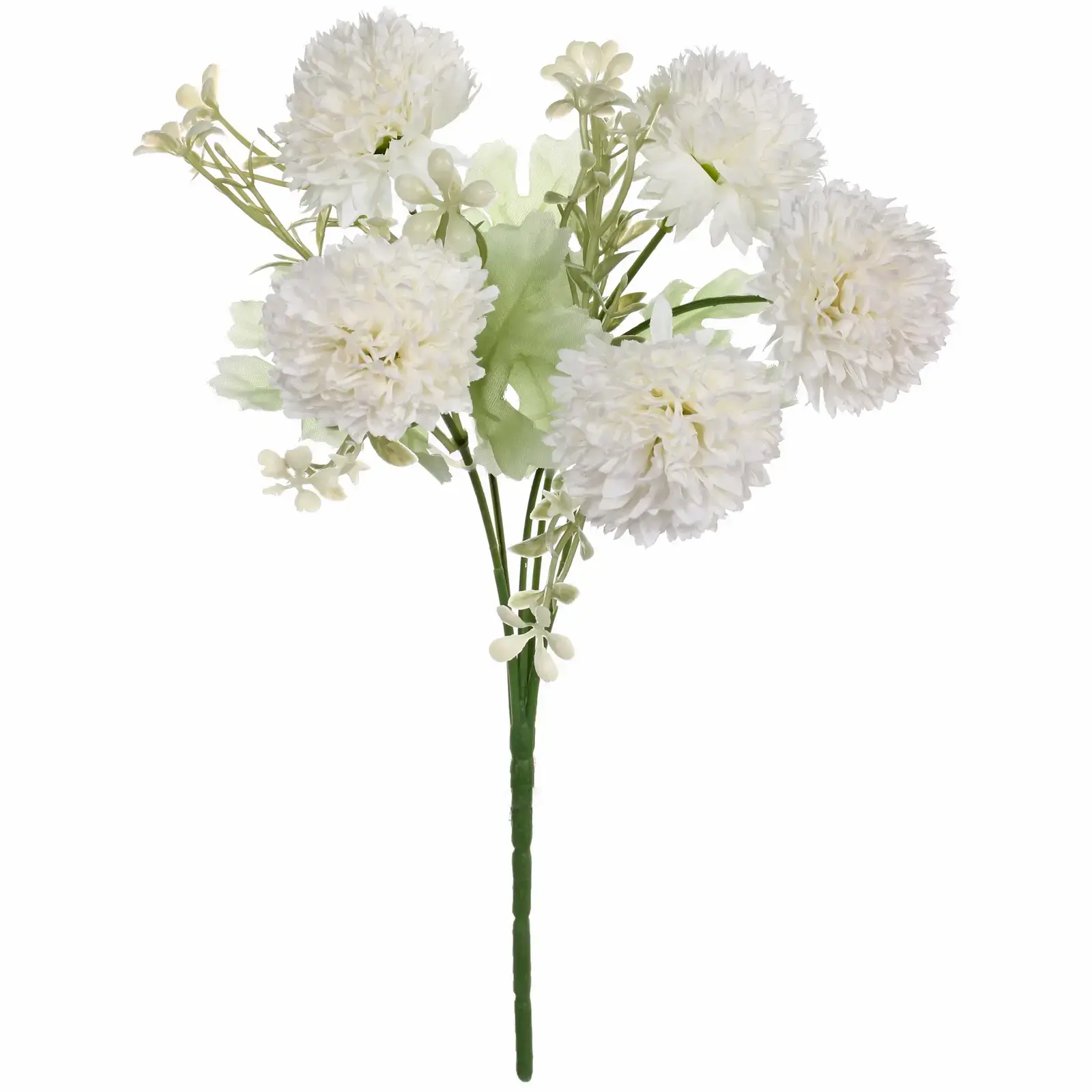 Элегантный букет из искусственных цветов «Букет хризантем» высотой 25 см включает 5 белых соцветий, идеально подходящих для украшения дома, офиса или кафе. Эти декоративные растения сохраняют привлекательный внешний вид без ухода, в отличие от живых, и создают уютную атмосферу.