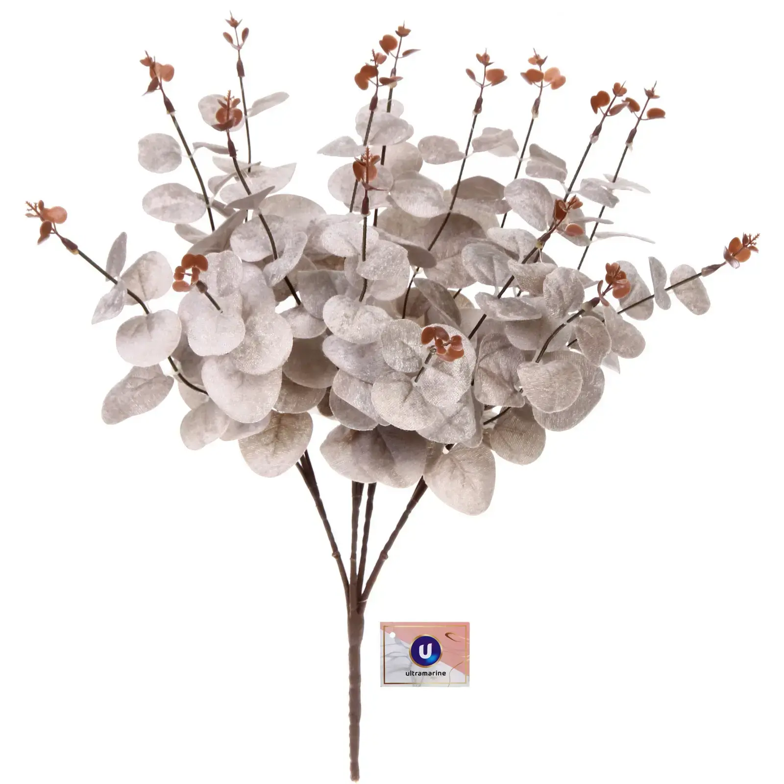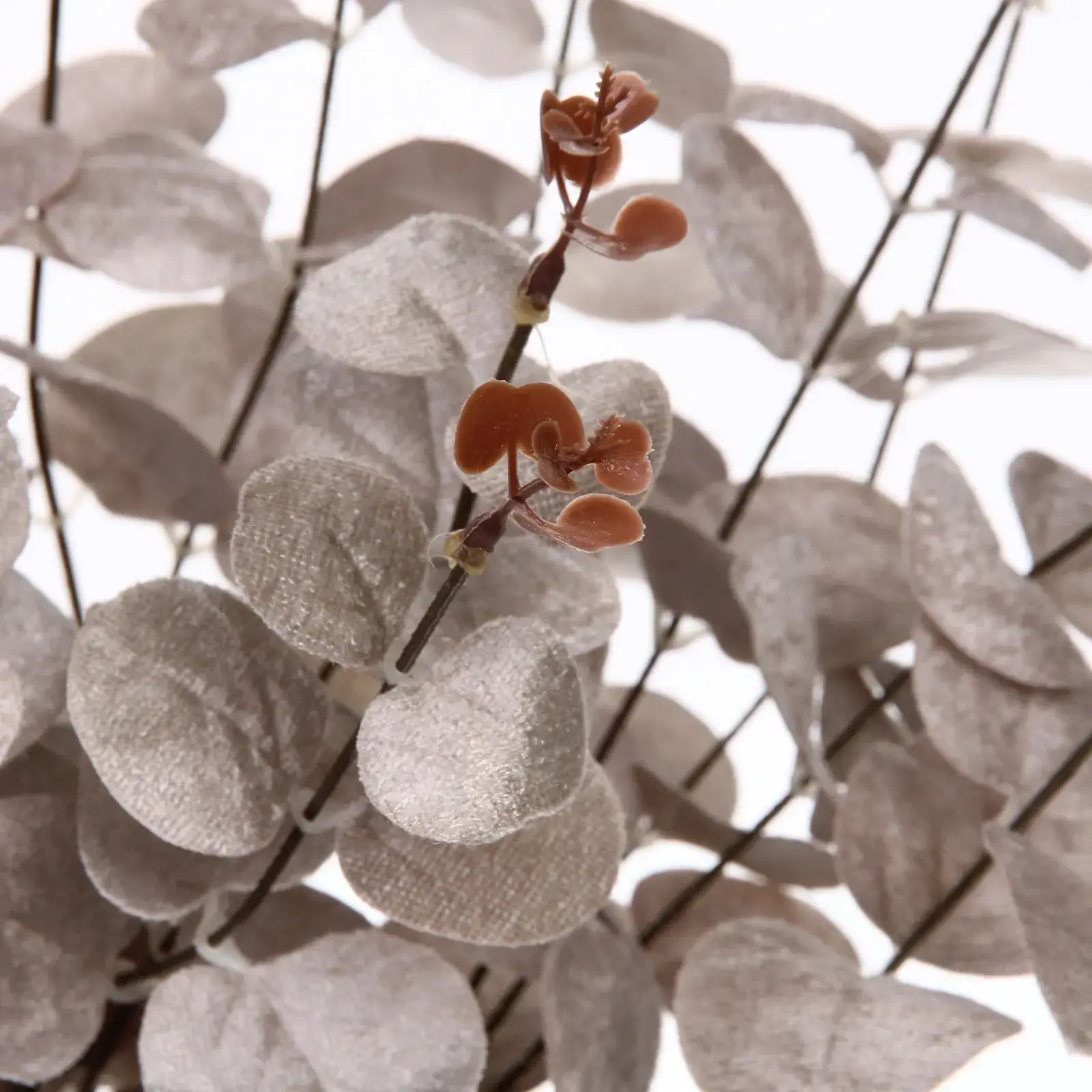 Практические детали: Веточка длиной 50 см, изготовлены из пластика и полиэстера, имитируют натуральные листья и цветы. Цвет эвкалипта пыльный — нейтральный и подходящий для различных стилистик.