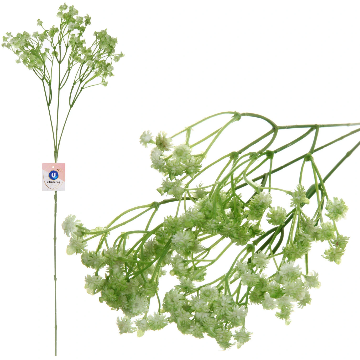 - Реалистичный внешний вид: Множество мелких шарообразных соцветий на тонких разветвлённых стеблях точно имитируют природную красоту живого растения. Плавный переход от светло-зелёного к почти белому оттенку добавляет натуральности.