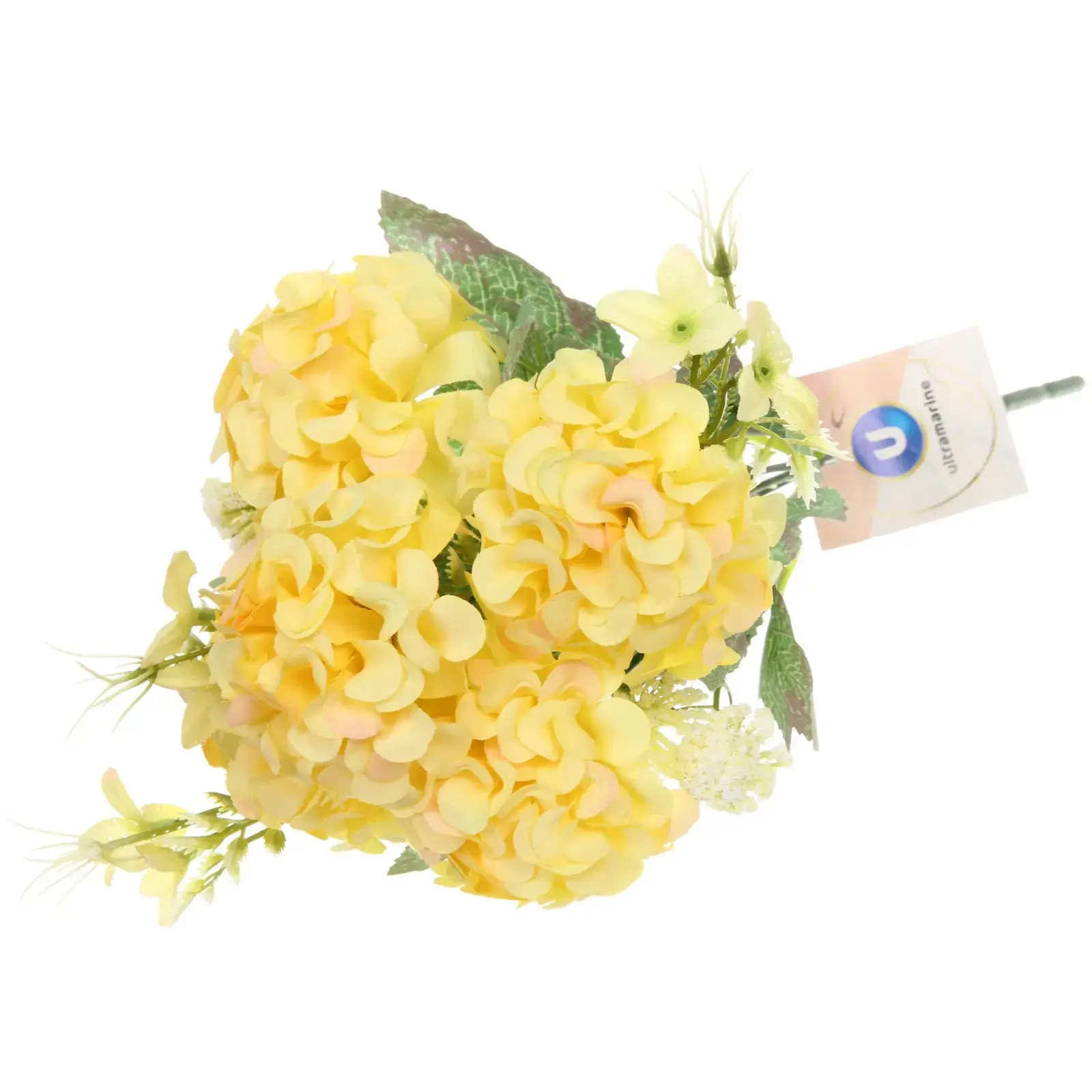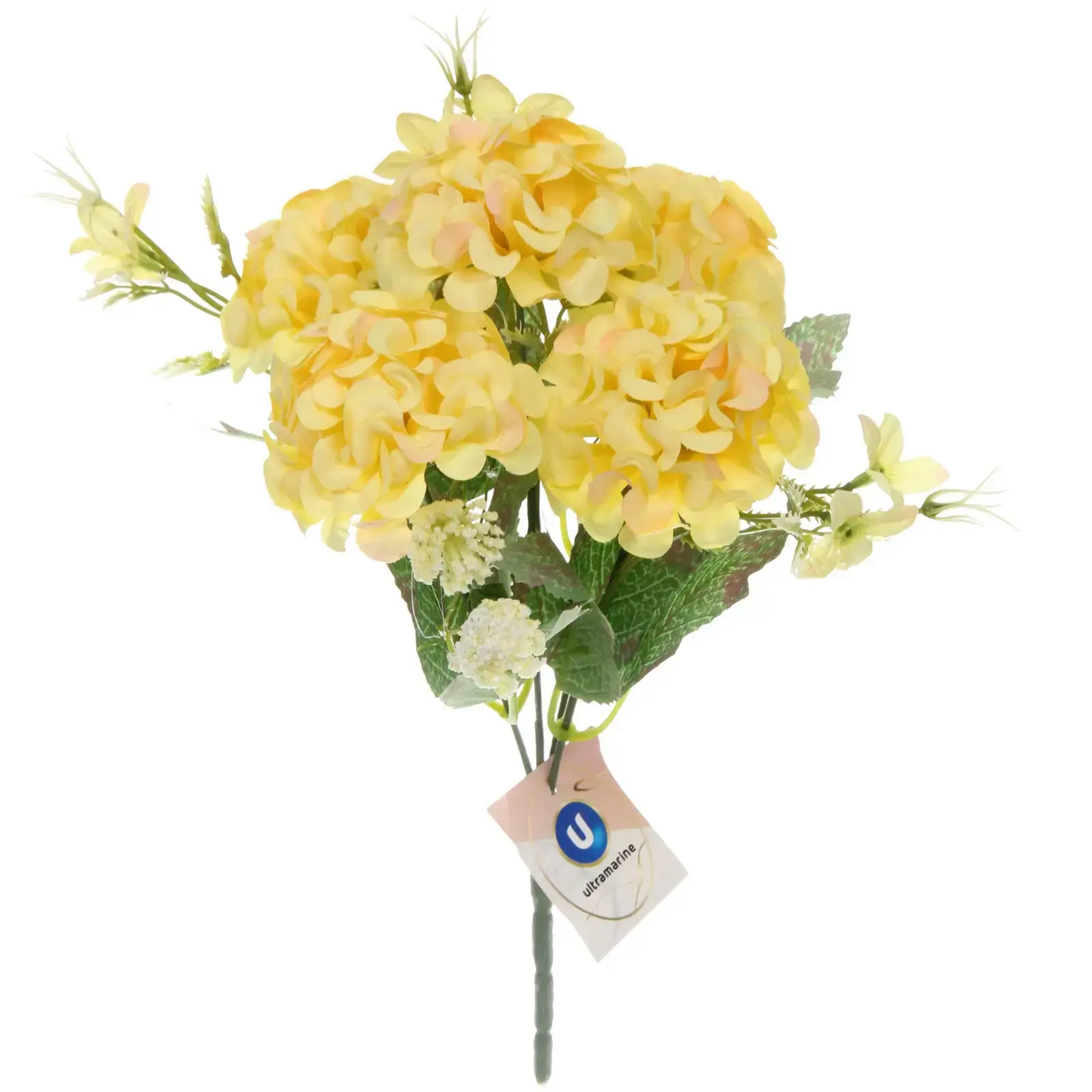 Преобразите ваше пространство с помощью искусственного букета гортензии «Летнее вдохновение». Этот яркий желтый букет станет не только стильным украшением вашего интерьера, но и источником позитива и хорошего настроения. Искусственные цветы не вянут и сохраняют свой презентабельный вид на протяжении долгого времени, что делает их идеальным выбором для любого дома или офиса.