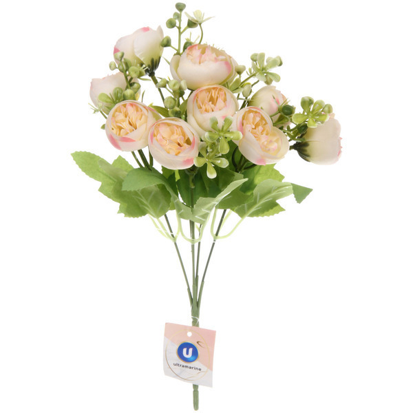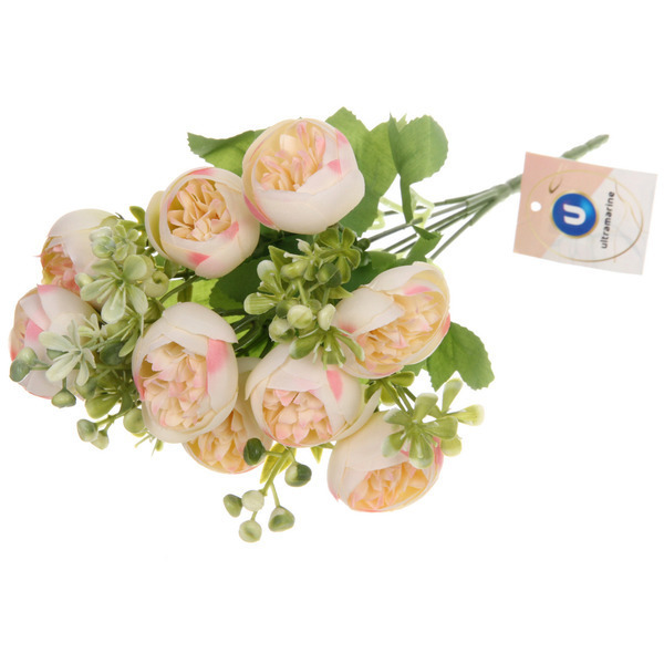 Цветы выполнены в нежных бежевых оттенках, что делает их универсальными для любого стиля оформления. Высота букета составляет 30 см, что позволяет использовать его как в больших, так и в маленьких вазах. Стебли цветов выполнены из прочного пластика, что обеспечивает их стабильность и долговечность.