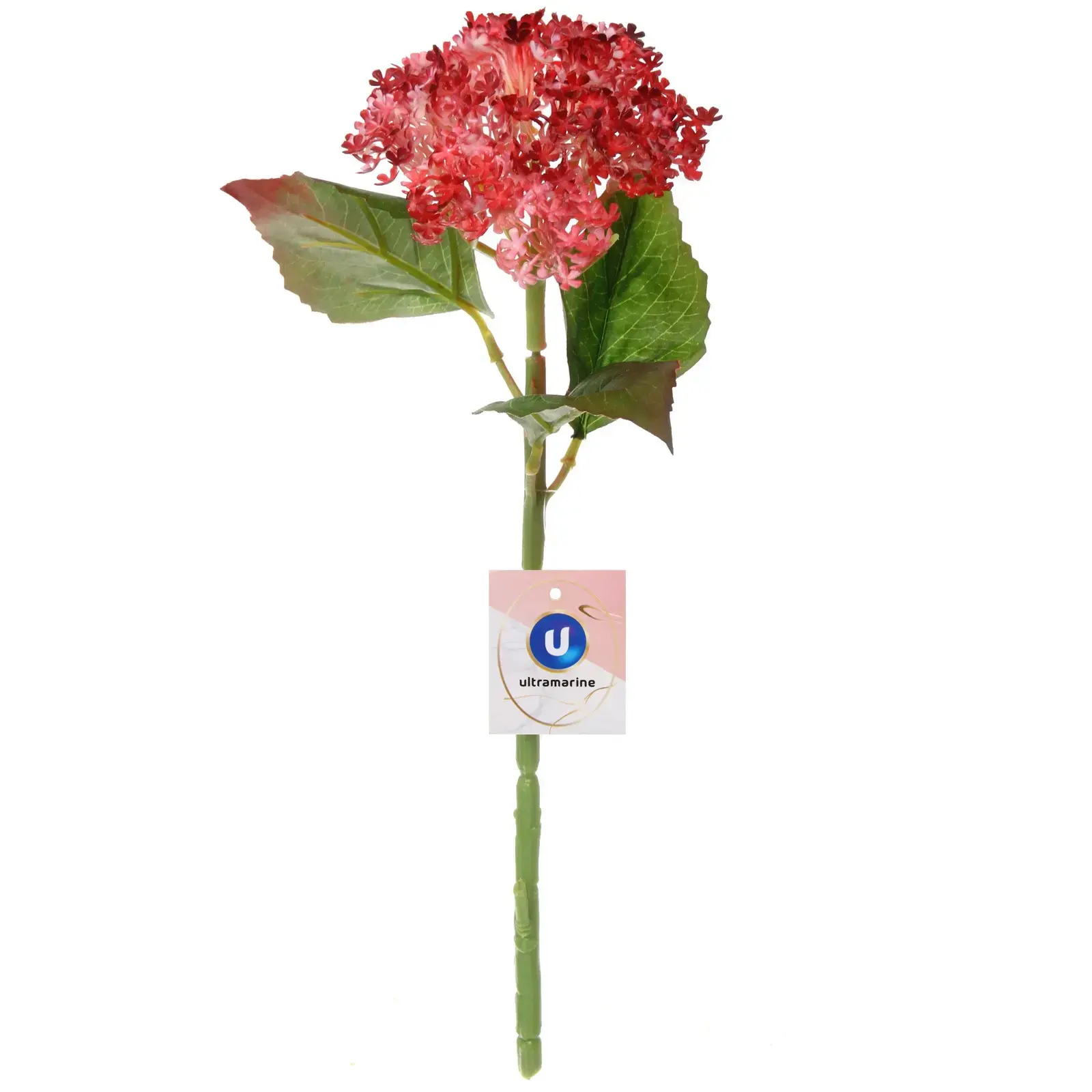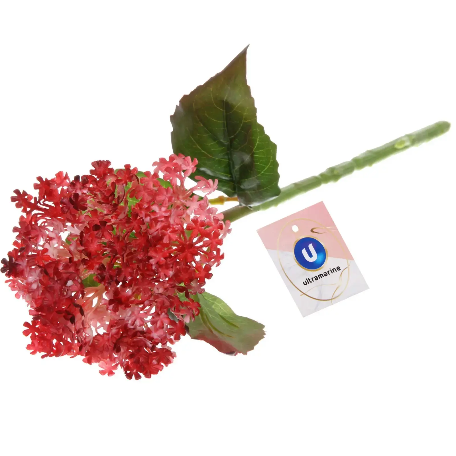 Цветок имеет яркие бордовые соцветия, которые добавят яркости и жизни в любое пространство. Стебель зеленого цвета с текстурой, имитирующей натуральный стебель, и крупные листья с выраженной жилковкой делают этот цветок еще более реалистичным. Размеры цветка составляют 35 см в высоту, что позволяет использовать его в различных композициях и декорациях.