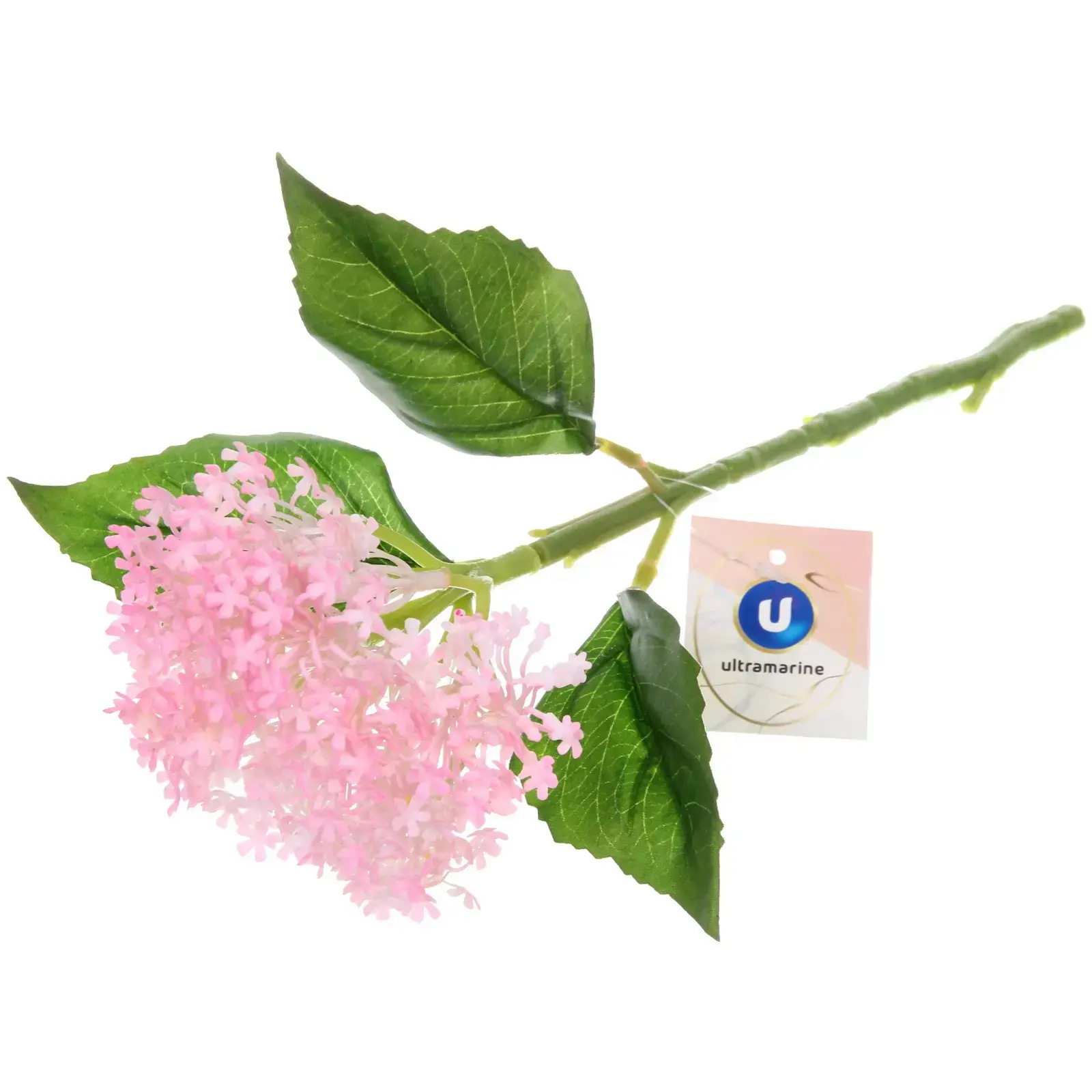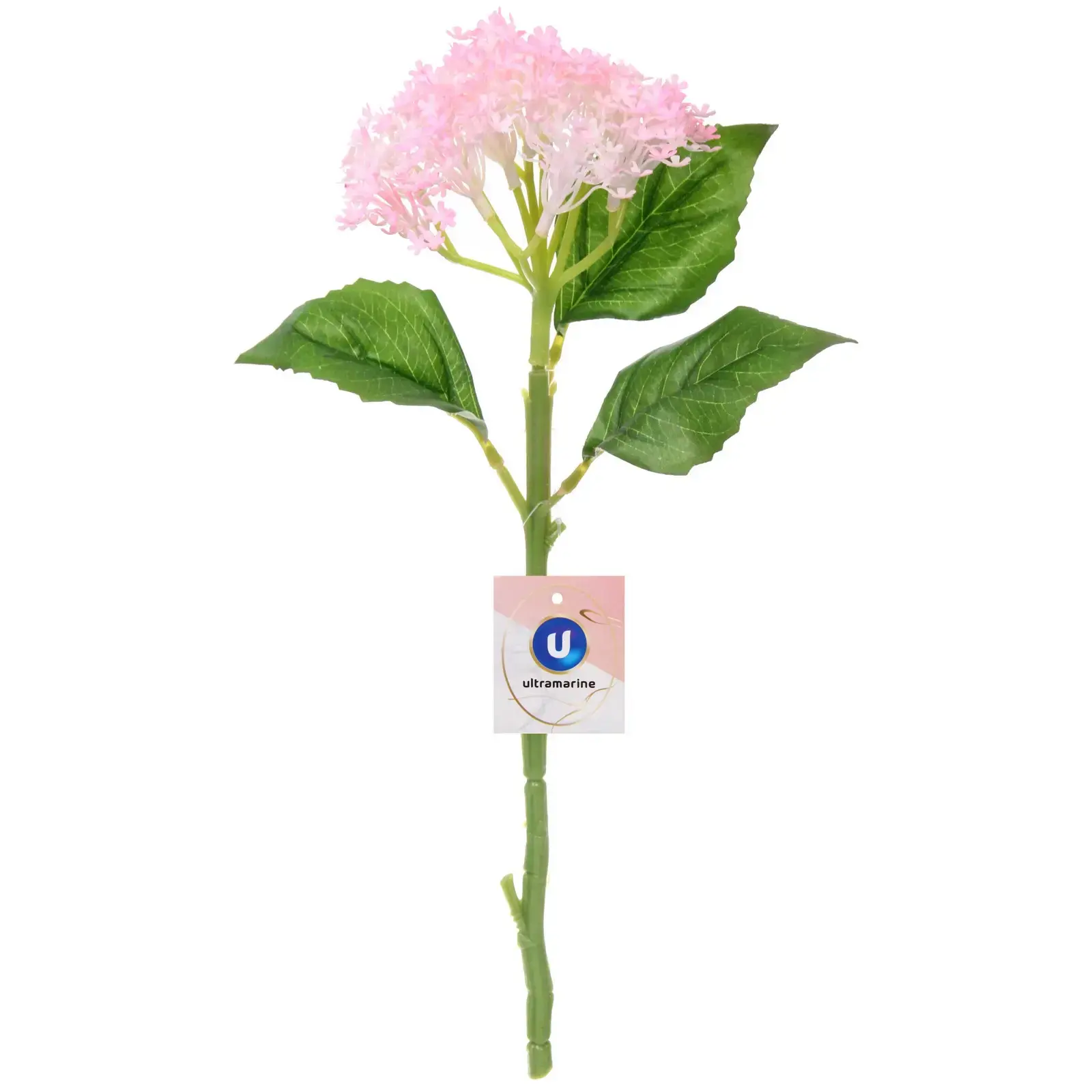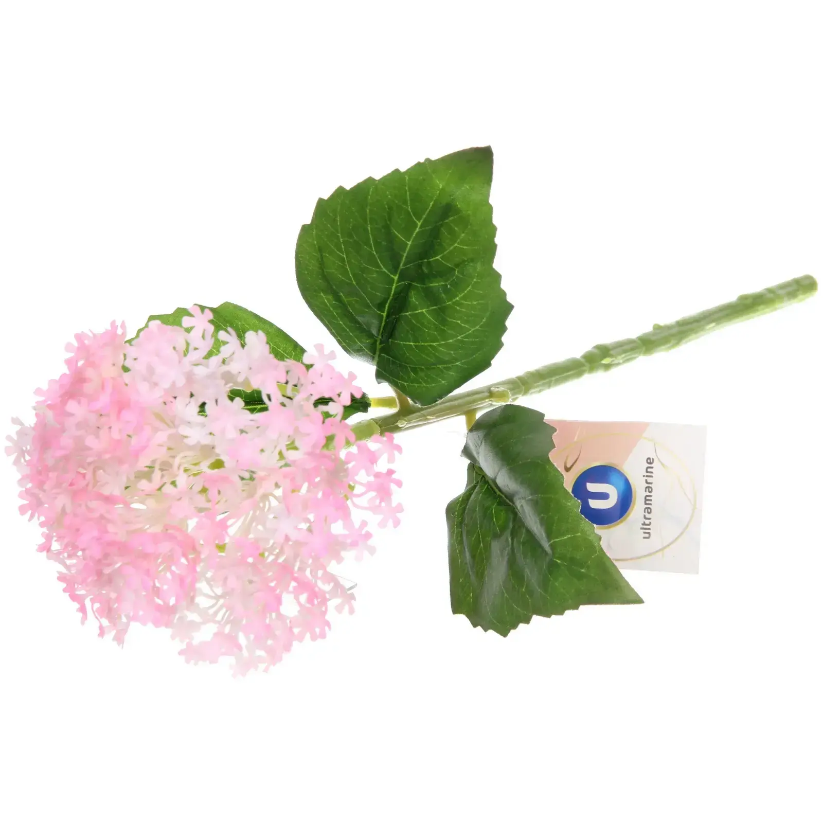Цветок имеет пышные розовые соцветия и зелёные листья с четко выраженной текстурой, что придаёт ему естественный вид. Стебель окрашен в зелёный цвет и выполнен из прочного пластика, что делает его идеальным для декорирования. Размеры цветка позволяют использовать его как в одиночных композициях, так и в сочетании с другими растениями.