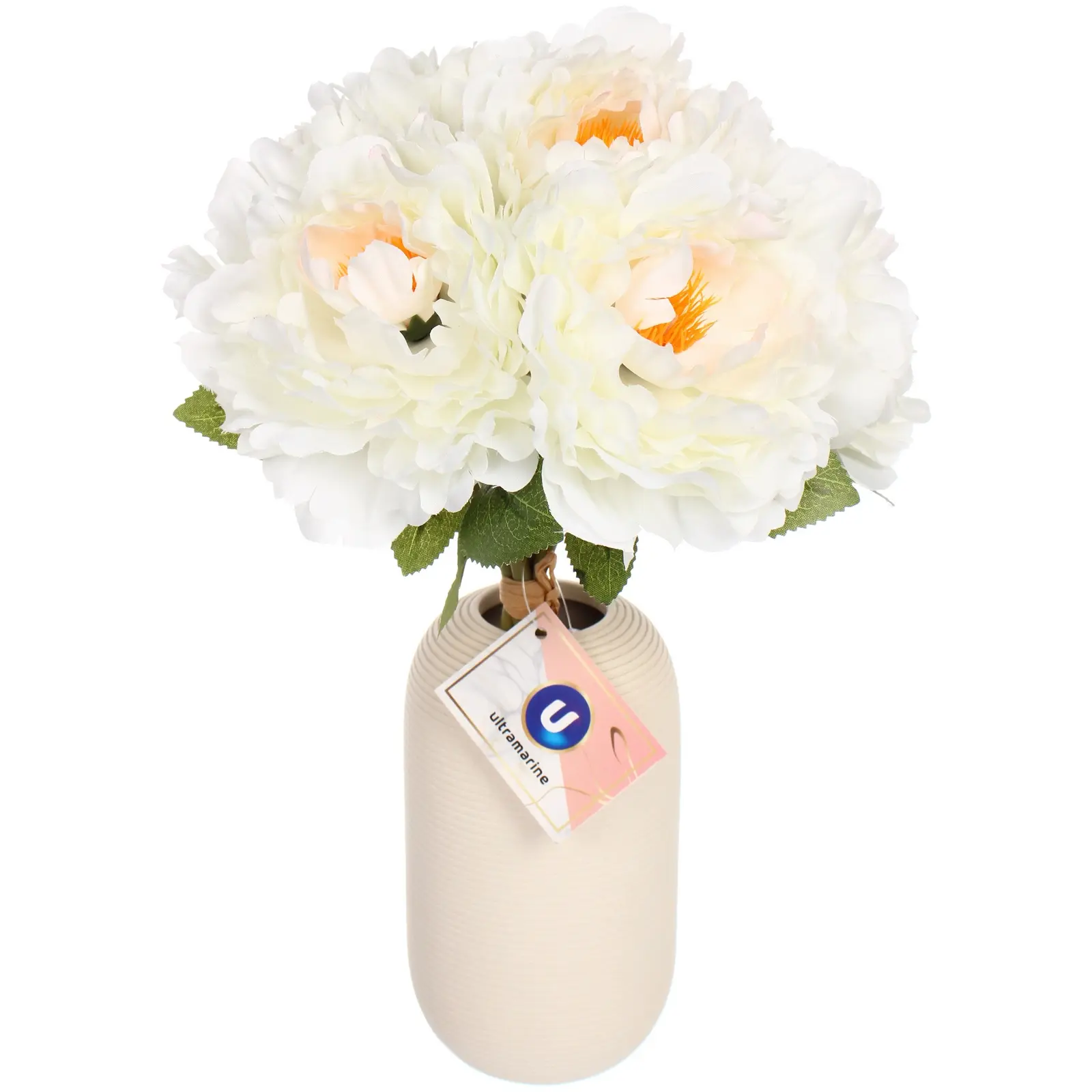 Искусственные цветы «Пионы» длиной 28 см — это идеально подходящий выбор для тех, кто ценит красоту и долговечность. Этот букет из 6 белых цветов создает естественный и изящный декоративный акцент в любом помещении, не требующий ухода и не вянущий со временем. Такой букет подойдет для украшения дома, офиса, кафе или для использования в фотосессиях, привлекая взгляд своей реалистичностью и яркими деталями.