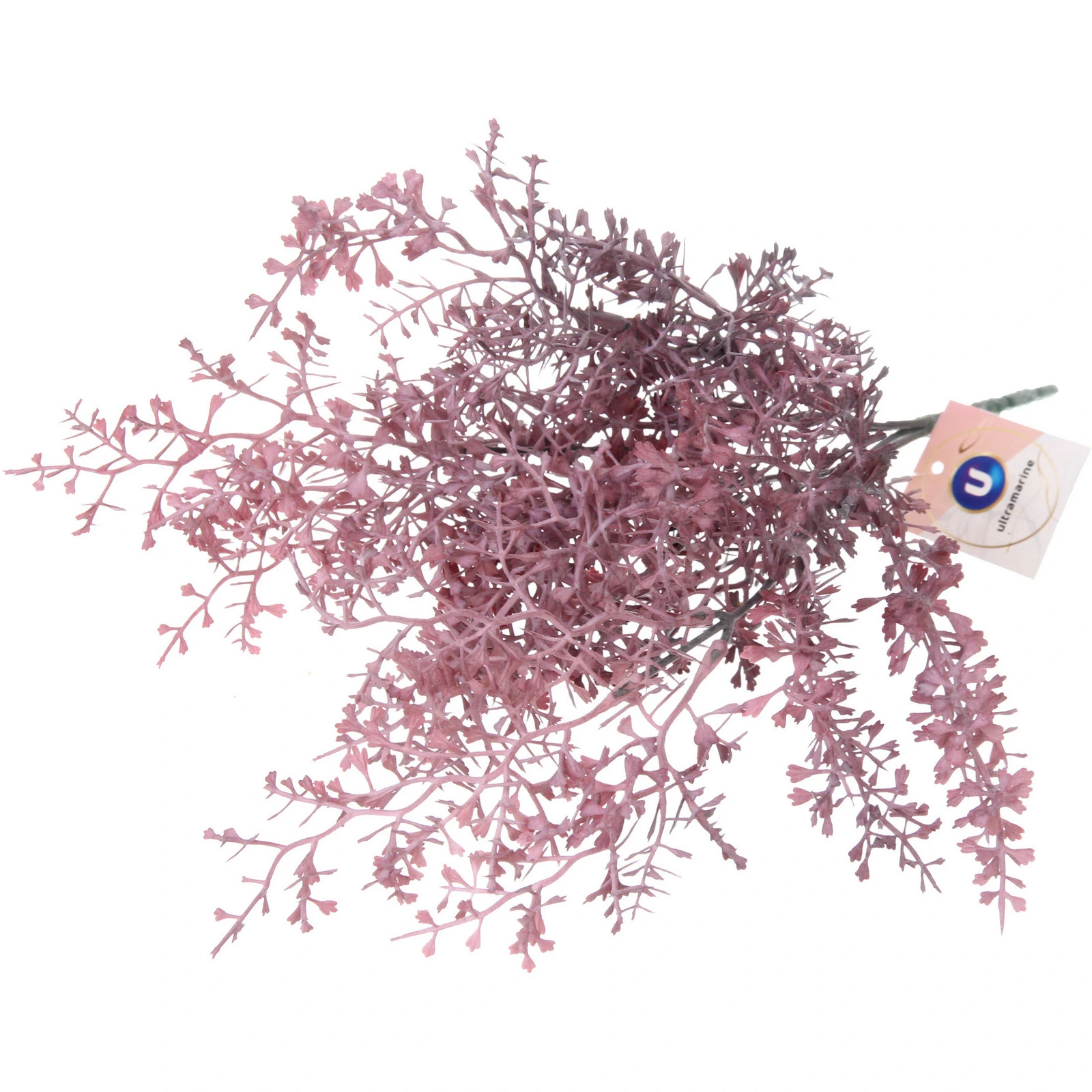 Веточка искусно выполнена из пластика, что обеспечивает её прочность и лёгкость. Множество мелких разветвлений и листочков создают объём и реалистичную, «пушистую» фактуру. Нежный розово-лиловый оттенок листьев в сочетании с зелёным основанием стеблей максимально приближает декор к виду живого растения. Товар поставляется с фирменным ярлыком.