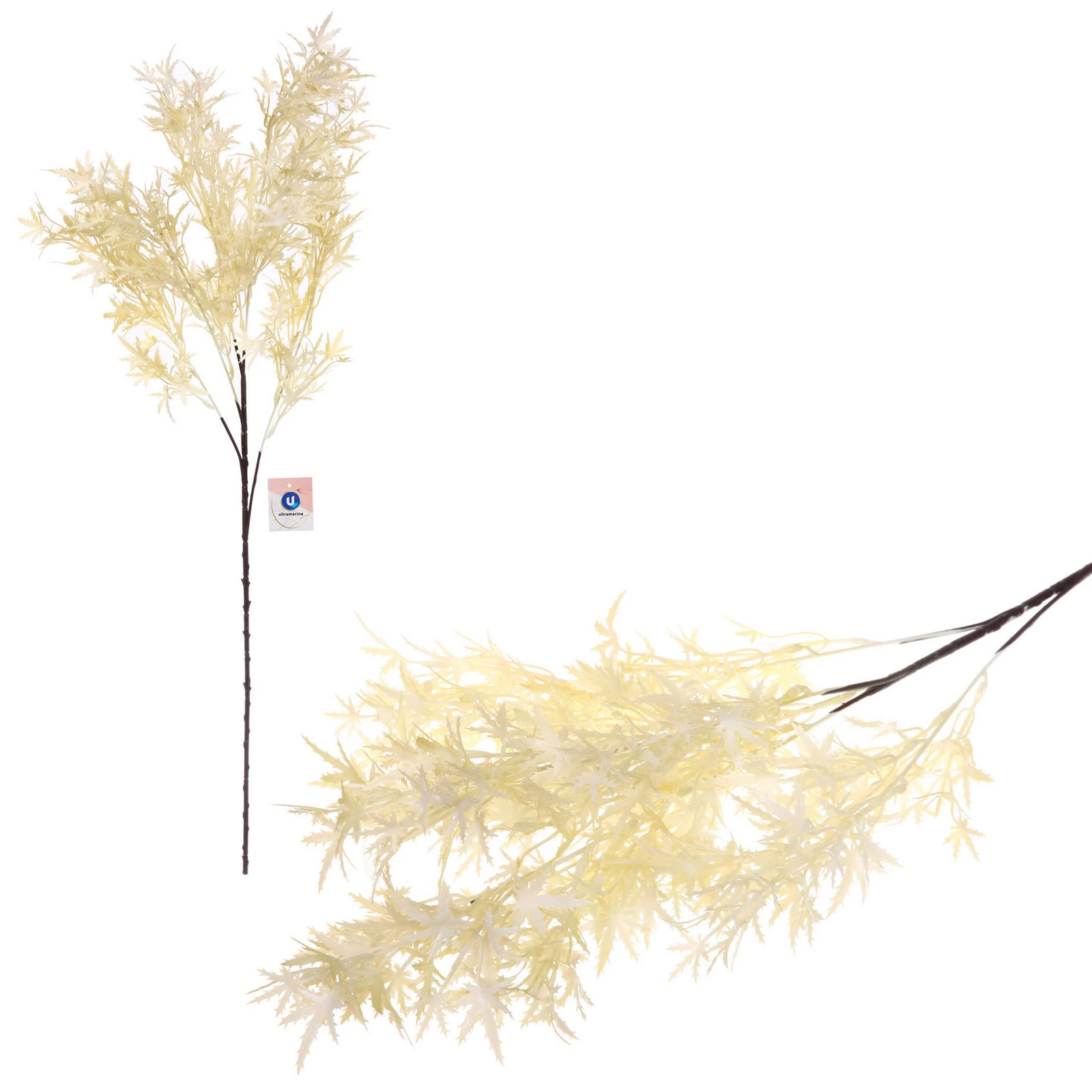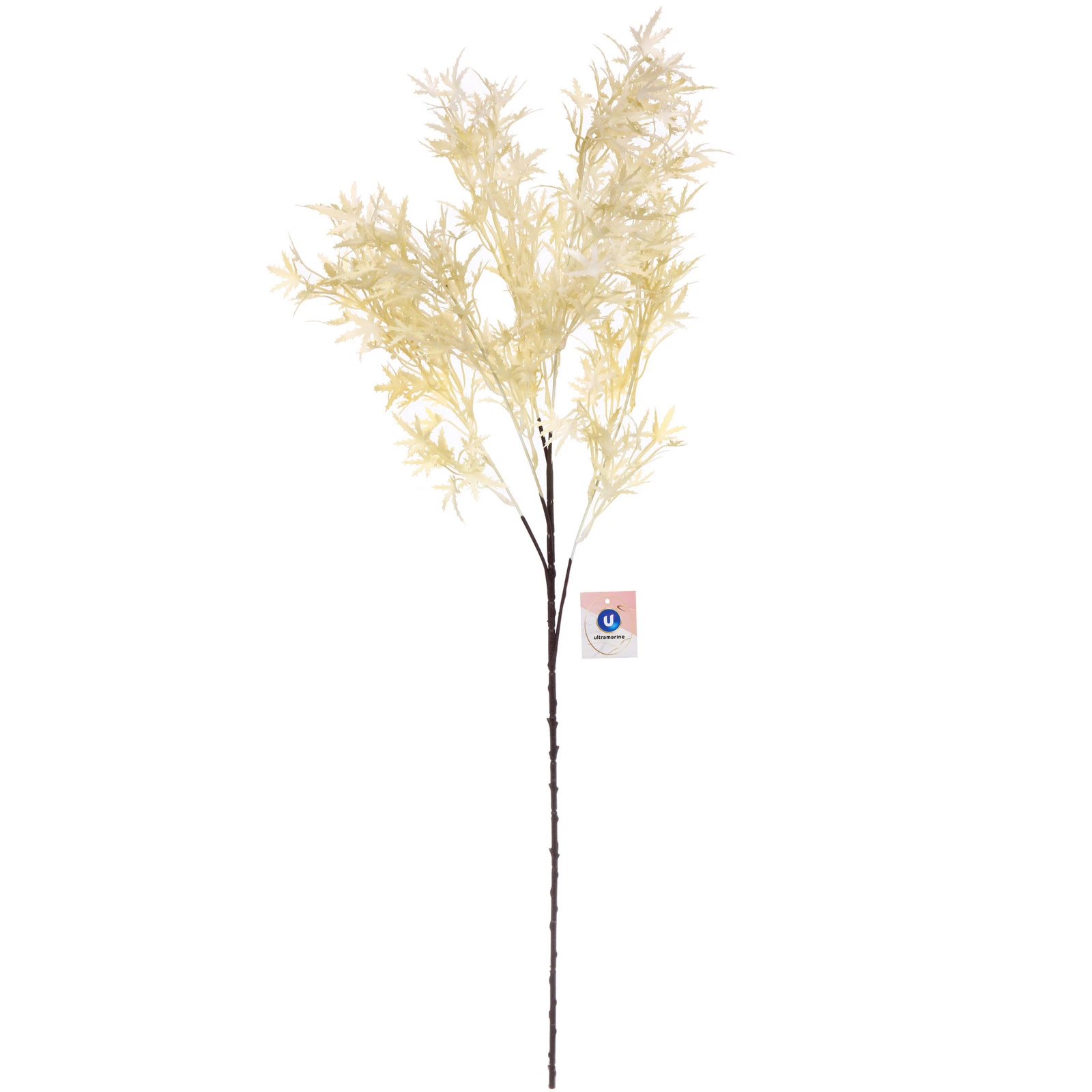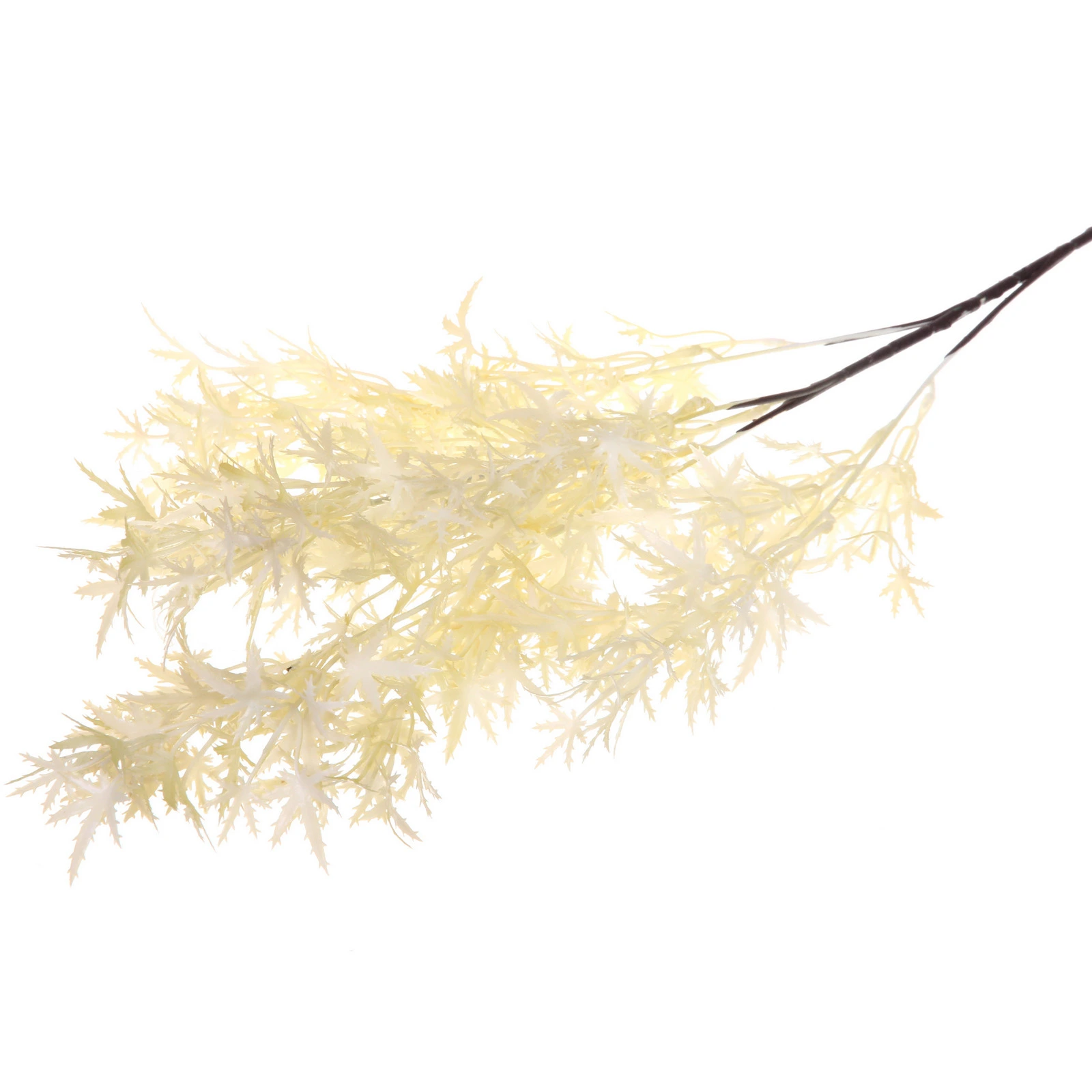 - Реалистичный внешний вид: Ветка искусно выполнена из пластика, имитируя живую растительность. Тонкий тёмно-коричневый стебель и множество мелких ажурных листьев создают впечатление натуральности.