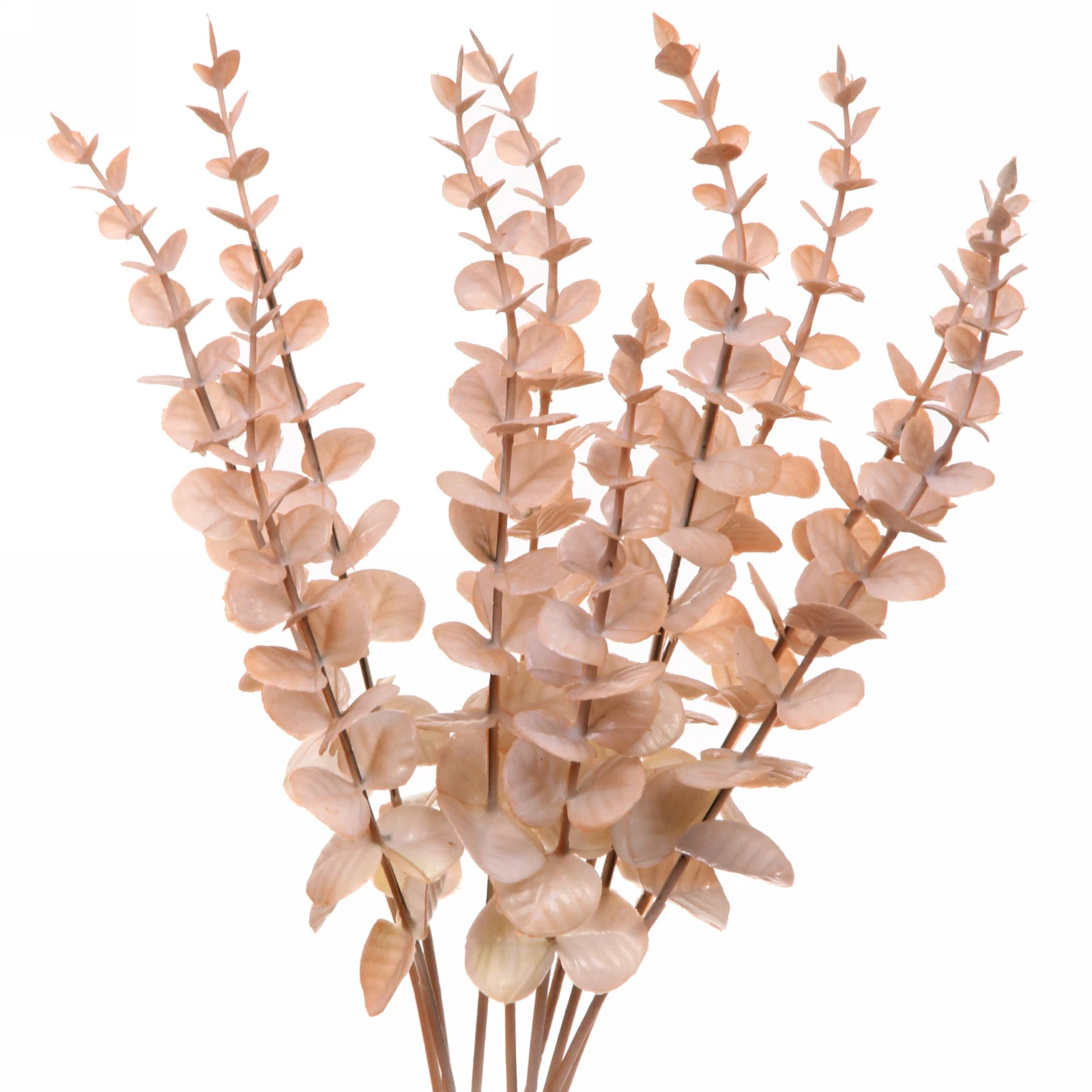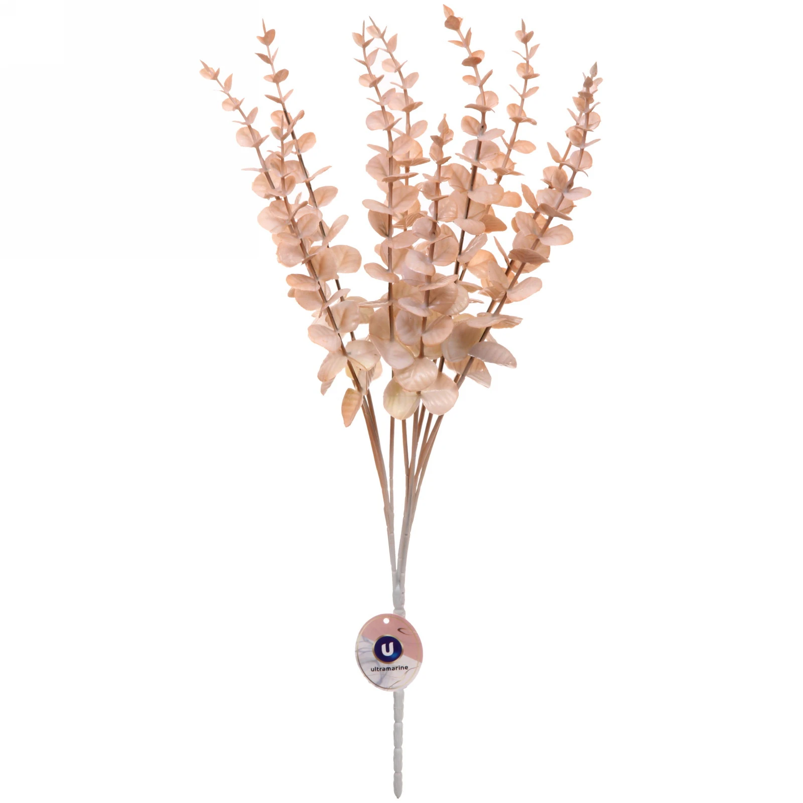 - Реалистичный вид: Множество мелких листьев разного размера, расположенных вдоль тонких стеблей, создают эффект натурального растения. Цветовая гамма — нежный персиковый — выглядит естественно и современно.