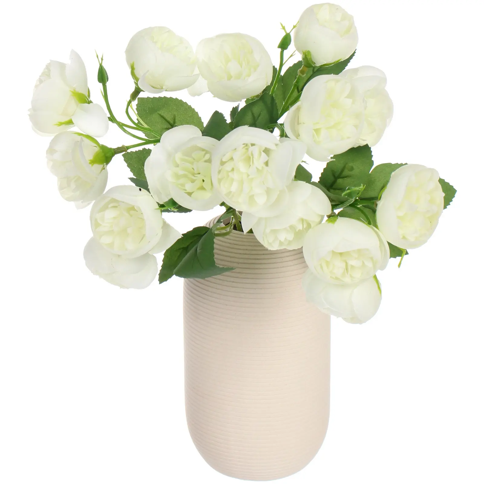 Материал — высококачественный пластик и полиэстер, что обеспечивает мягкость, прочность и естественный внешний вид. Размер — около 30 см, а в набор входит 15 белых цветов с зелеными листьями и стеблями. Стильная и практичная покупка для создания уютных интерьеров и подарков, которые не требуют обслуживания и радуют глаз длительное время.