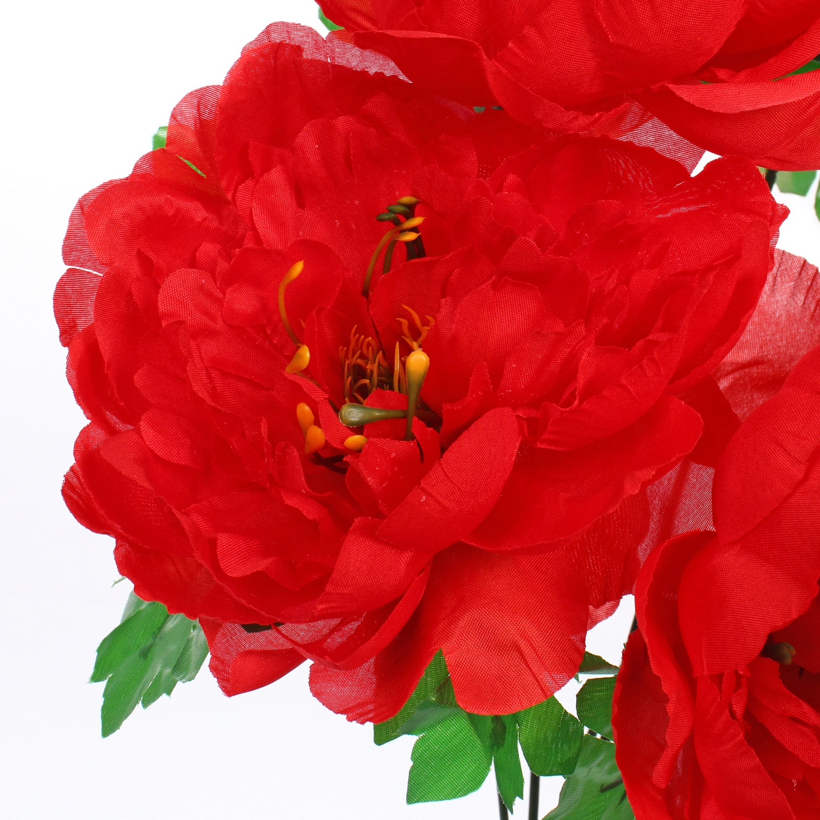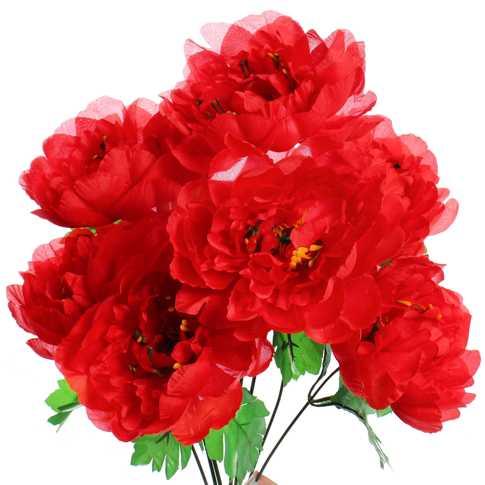 - Многослойные, волнистые лепестки из полиэстера создают пышную, объёмную форму бутона.